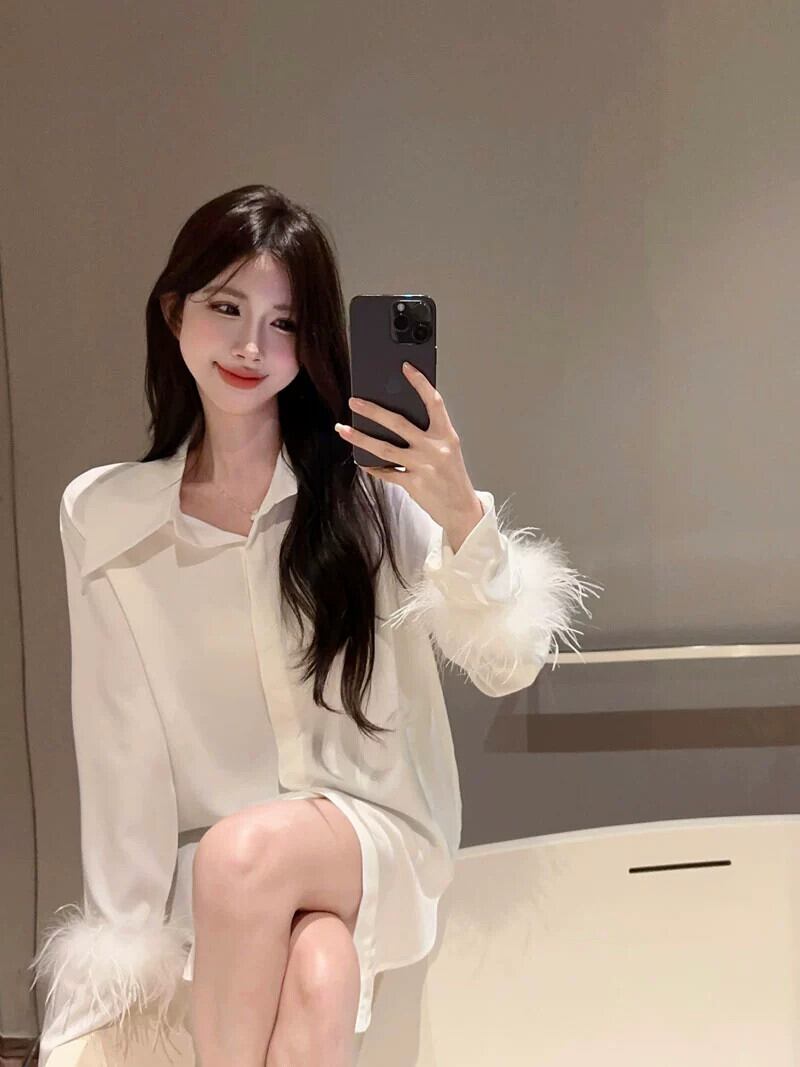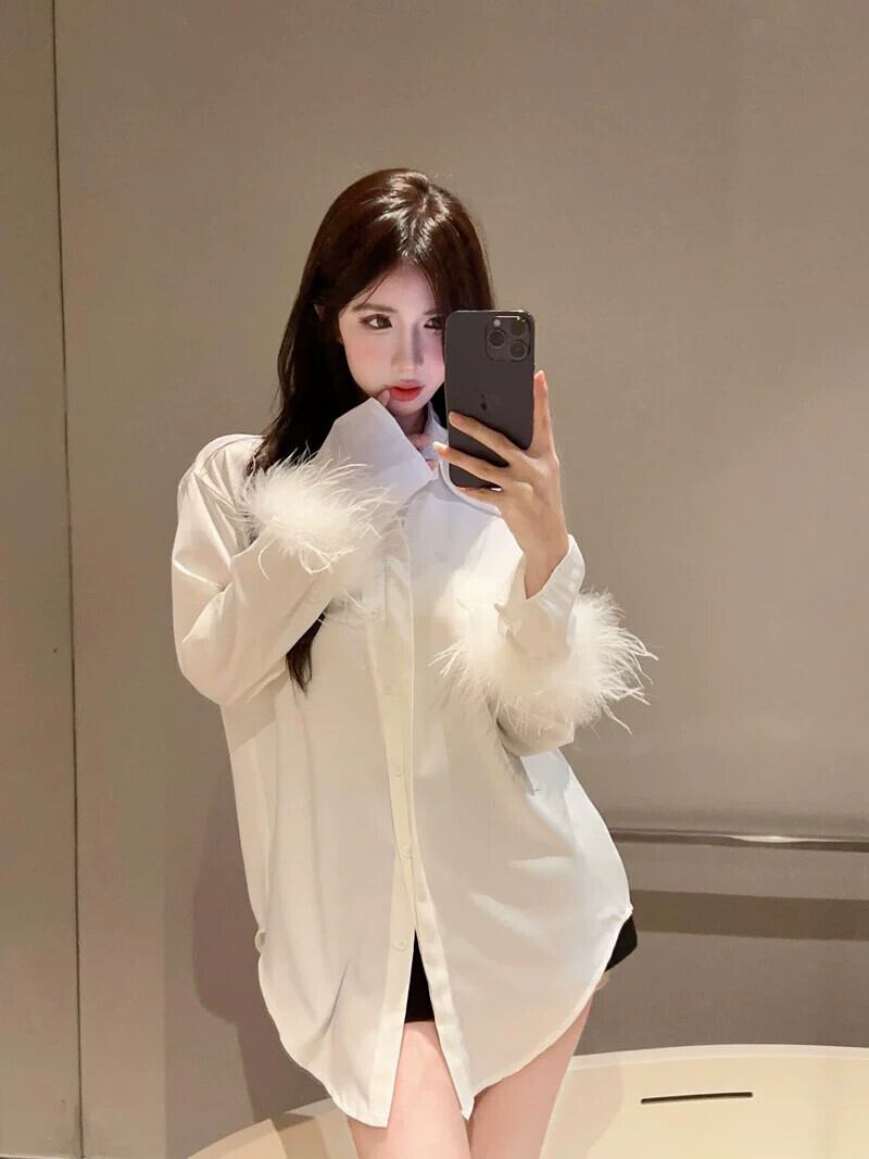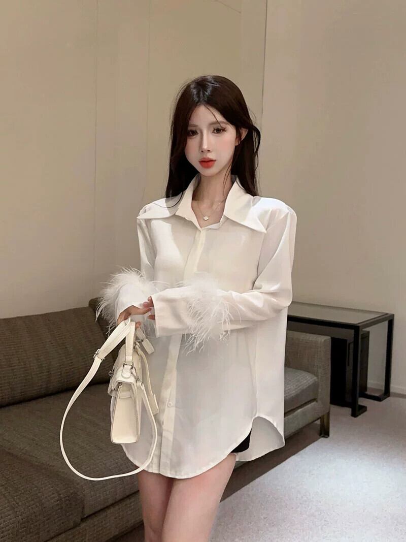 秋冬のフランスのニッチ長袖シャツ女性、多用途でゆったりとした気質、ハイエンドのミッドレングスの白いシャツトップ ロング ホワイト オータム 秋物 ウィンター 冬物 nana30273233479 | modepoisson