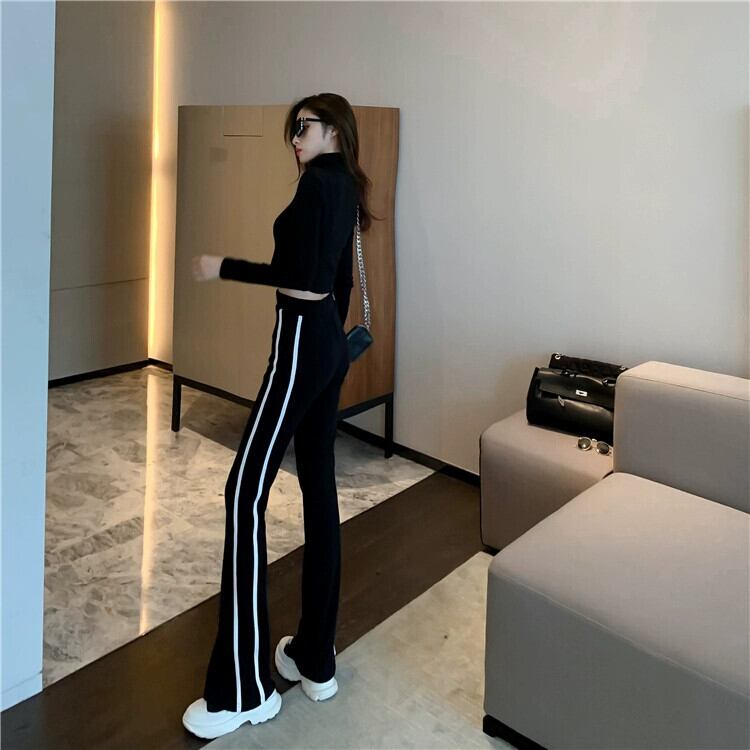 スポーツウェア フェミニン スーツ 春トップ スリミング ワイドレッグ ストライプ パンツ 2024 ツーピース セット スプリング 春物 ワイドパンツ nana17980268666 | modepoisson