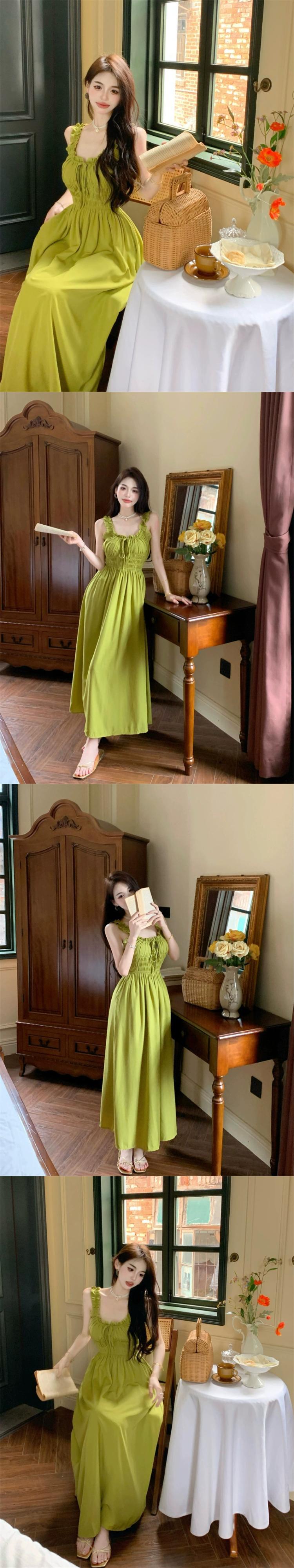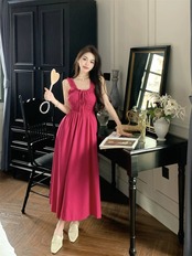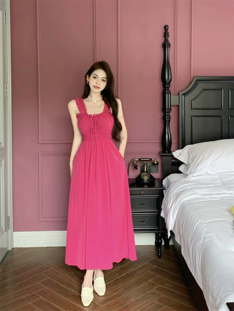 甘いフレンチドレススリムサスペンダースカートデザインウエスト痩身気質ロングスカート女性の夏の新しいスタイル 大人ガーリー スウィート キュート カジュアル サマー 夏物 nana84937633977 | modepoisson