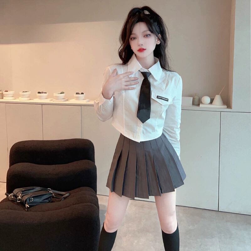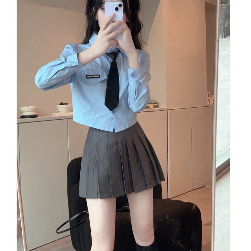 色:青いコートとネクタイ,ネクタイ付きホワイト,ブルーのネクタイ+グレーのスカートスーツ,白ネクタイ+グレースカートスーツ,白ネクタイ+黒スカートスーツ,青のネクタイ+黒のスカートスーツ