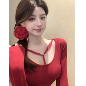 甘いセクシーな T シャツのデザインニッチ女性のインナーウェア痩身スリム長袖ボトシャツトップ春の新スタイル ロング 大人ガーリー スウィート キュート カジュアル スプリング 春物 Tシャツ nana61352166825 | modepoisson