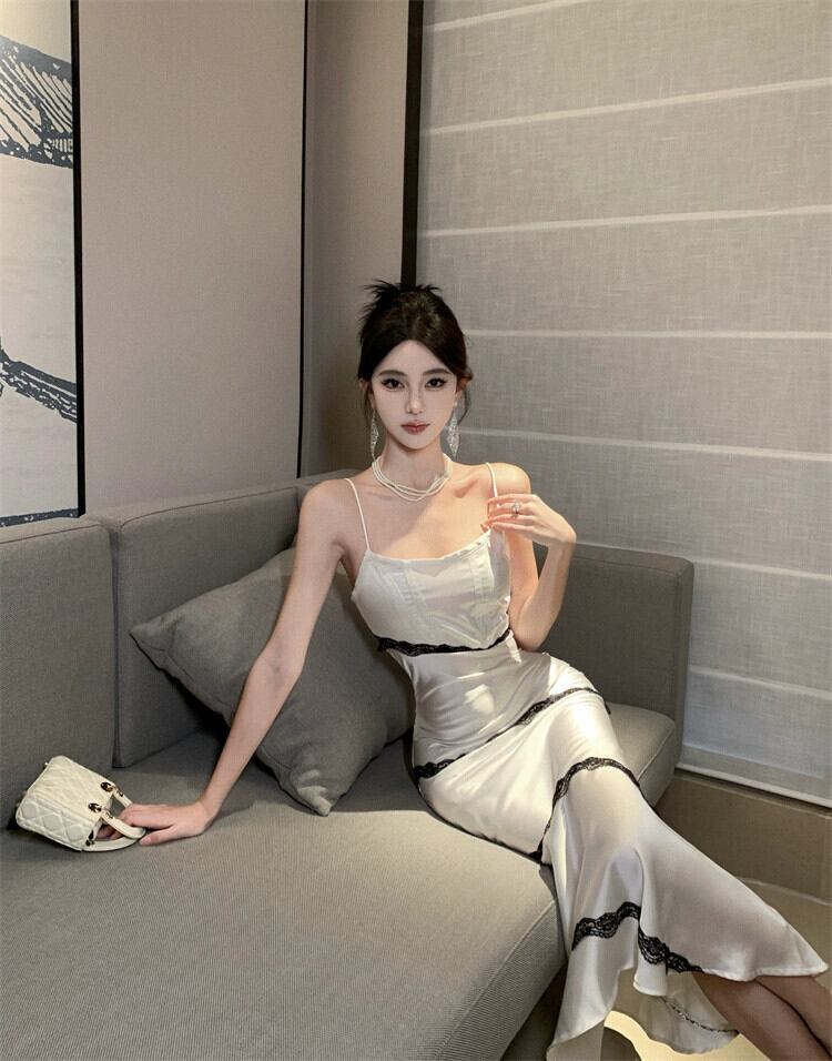 秋と冬のレースのスプライシングサスペンダードレス女性、ウエストを締める、痩身ロングスカート、セクシーなヒップハグスカート オータム 秋物 ウィンター 冬物 nana58937650768 | modepoisson