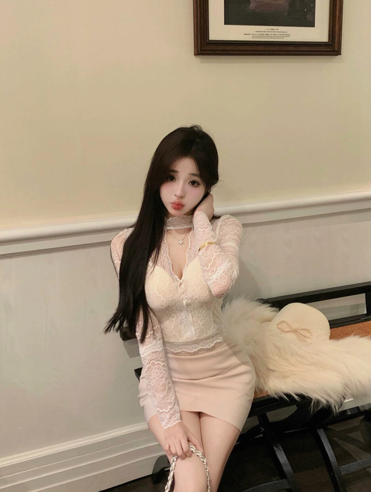 色:ホワイトレーストップ,ブルーレーストップ,ヌードピンクのスカート,青いスカート