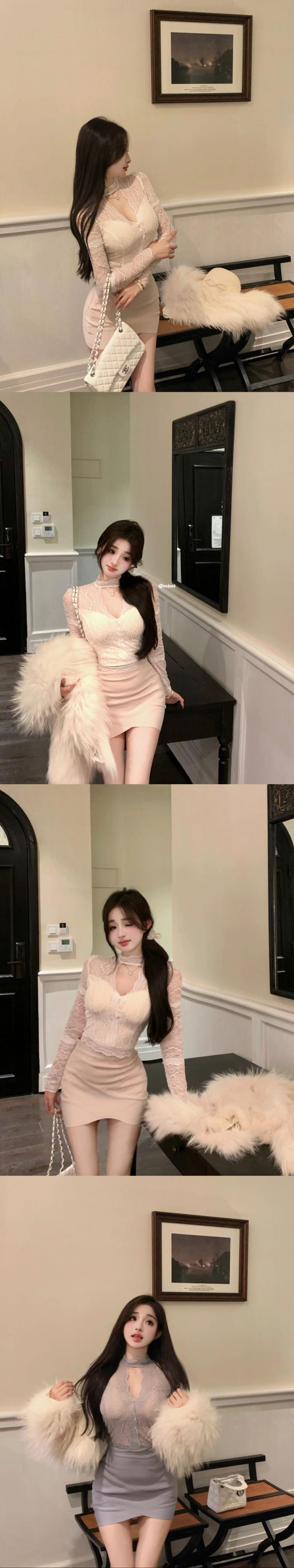 ホルターネックハイカラーレースボトニングシャツデザインニッチスリムインナートップ女性の長袖シャツ秋と冬の新しいスタイル ロング オータム 秋物 ウィンター 冬物 nana60962898913 | modepoisson