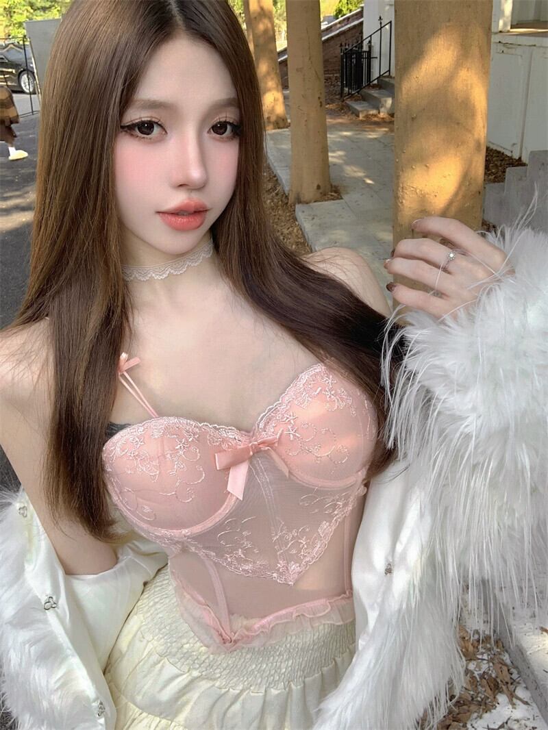 秋と冬の甘いネクタイレーススプライシングキャミソール女性、セクシーな底付けノースリーブショートトップアウターウェア 大人ガーリー スウィート キュート カジュアル オータム 秋物 ウィンター 冬物 nana65445531789 | modepoisson