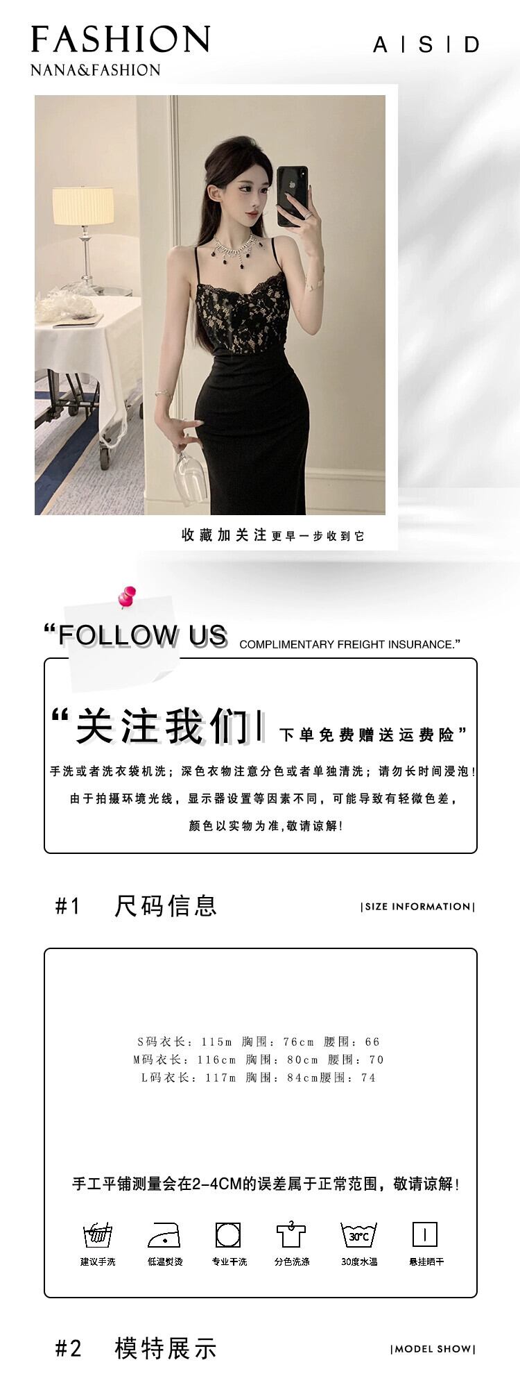 ヨーロッパとアメリカンスタイルのファッショナブルなセクシーなバックレスレースコントラストサスペンダースカートミッドレングス成熟した気質スリムフィッシュテールヒップスカート ヨーロピアン nana26530790177 | modepoisson
