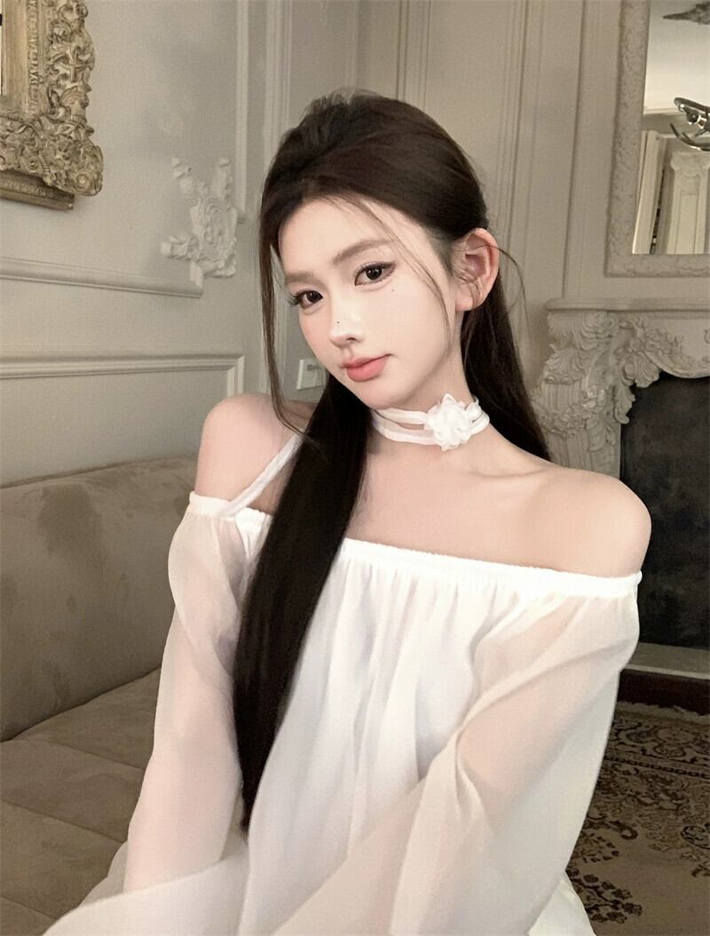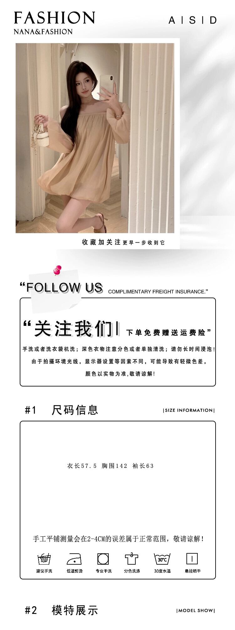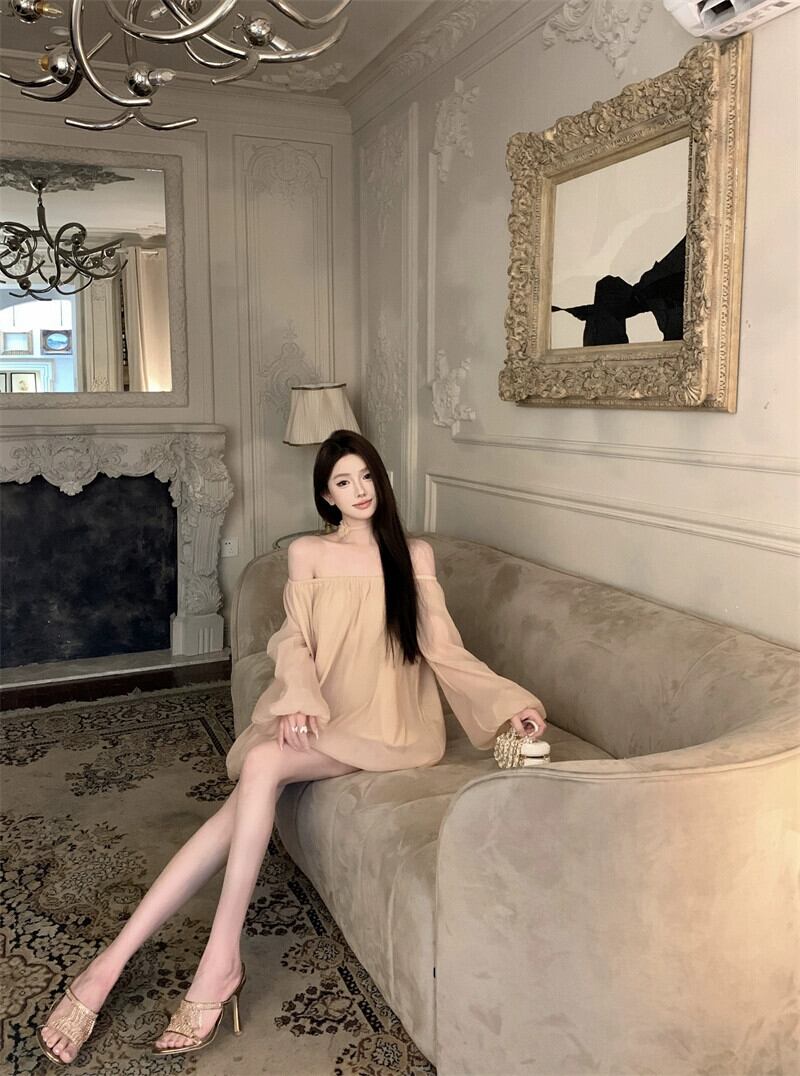 ナナ~優しく年齢を軽減するワンショルダーメッシュ長袖ドレス、夏の気質を持つ女性、ゆったりとスリムなつぼみショートスカート ロング サマー 夏物 nana38766027173 | modepoisson