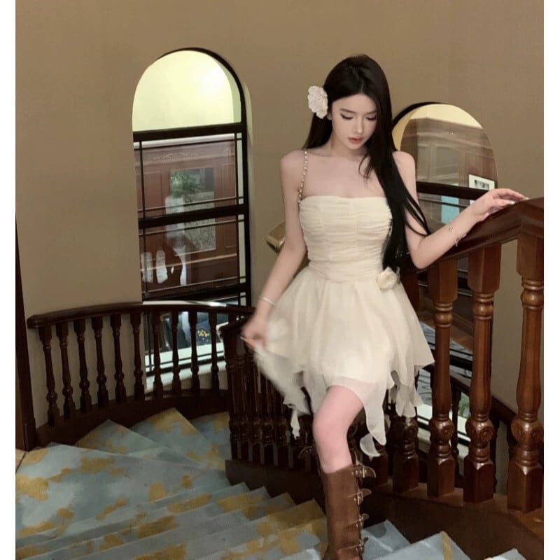 アメリカンスタイルのニッチほろ酔いスイートティー重工業チューブトップドレスウエスト痩身Aラインショートスカートと取り外し可能な花の女性 大人ガーリー スウィート キュート カジュアル フラワーデザイン nana1574771118 | modepoisson
