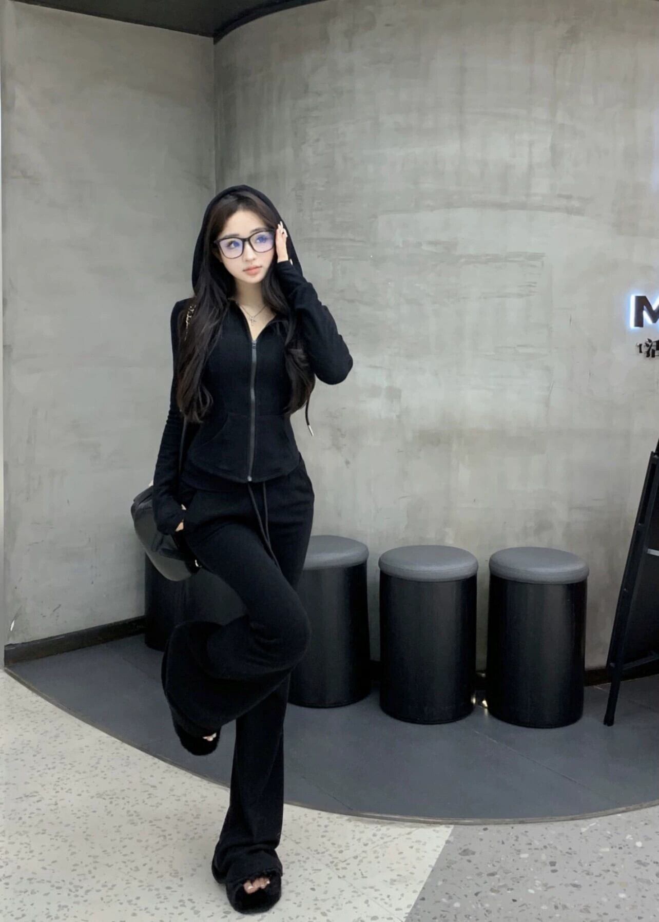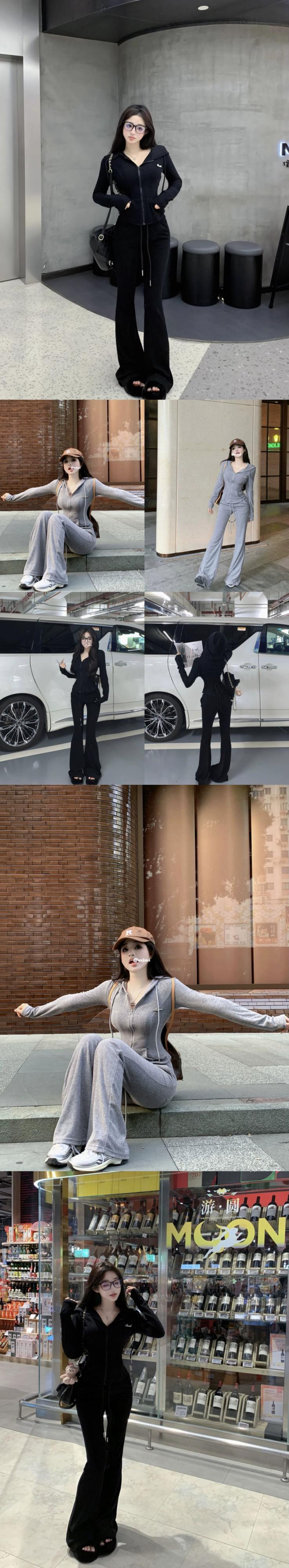 スポーツ スーツ、フード付きスウェットシャツ、ジャケット、トップ、ブーツカットのフロアレングス パンツ、ファッショナブルな服装 2024、多用途の婦人服 nana25871954774 | modepoisson