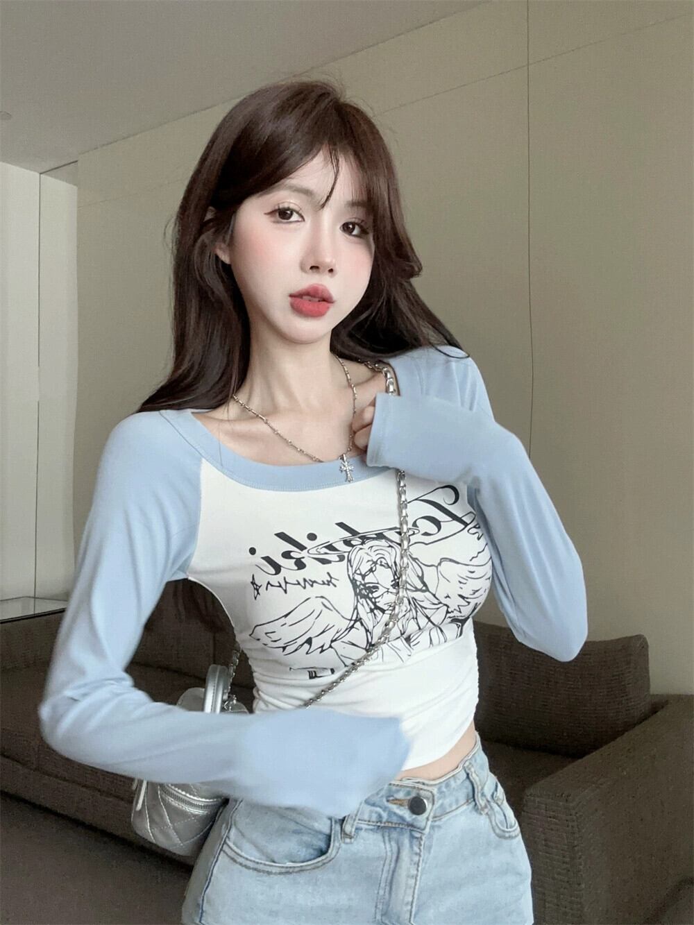 アメリカンスタイルのニッチな新しい初秋のカラーマッチング年齢を軽減する甘いネクタイプリーツタイトなショートTシャツトップトレンディな婦人服 大人ガーリー スウィート キュート カジュアル オータム 秋物 nana9071967506 | modepoisson