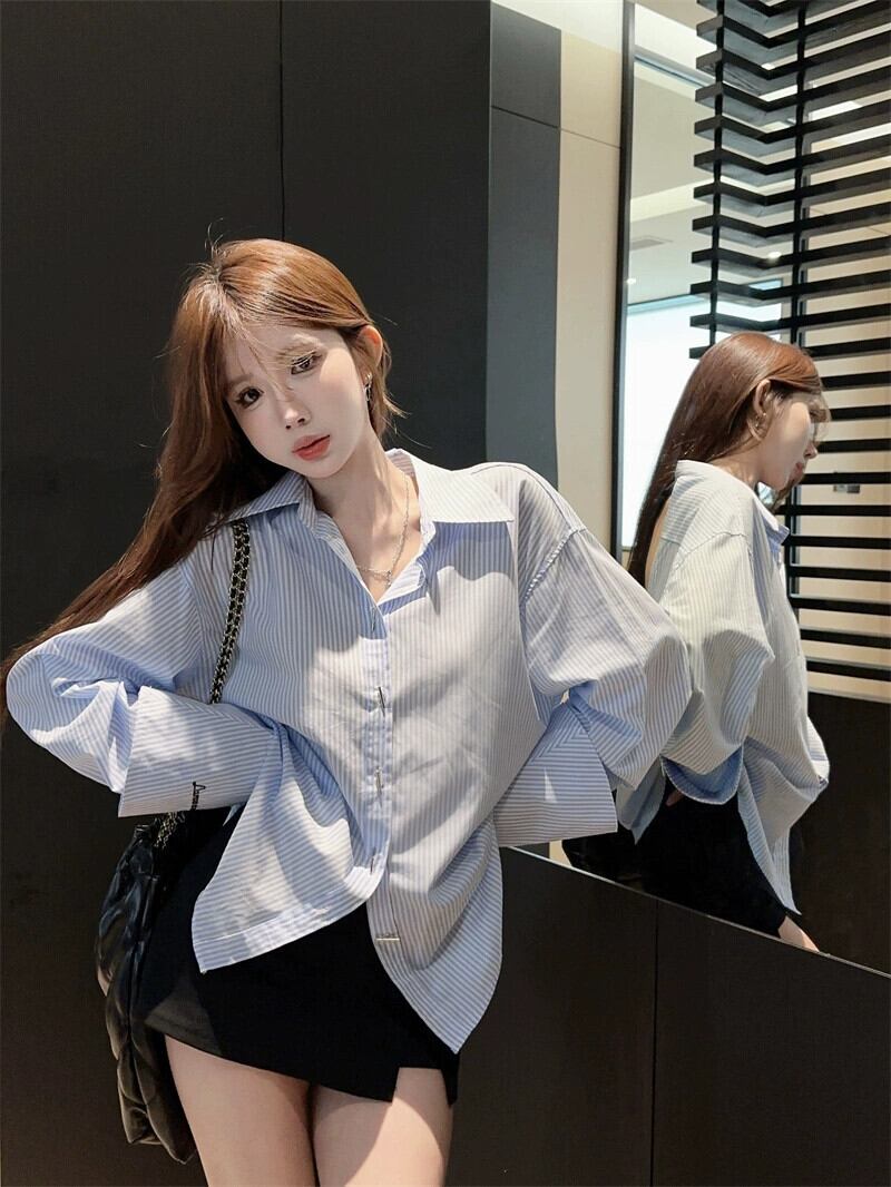 アメリカンスタイルの純粋な欲望セクシーなストライプのシャツの女性の秋のデザインニッチ中空背中の開いた弓シャツ女性 リボン オータム 秋物 ピュア nana66291322795 | modepoisson