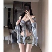 フレンチフリル長袖シフォンシャツ女性の夏の新しいvネックニッチデザイン甘くてスパイシーなショートトップ ロング 大人ガーリー スウィート キュート カジュアル サマー 夏物 nana42159542948 | modepoisson