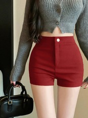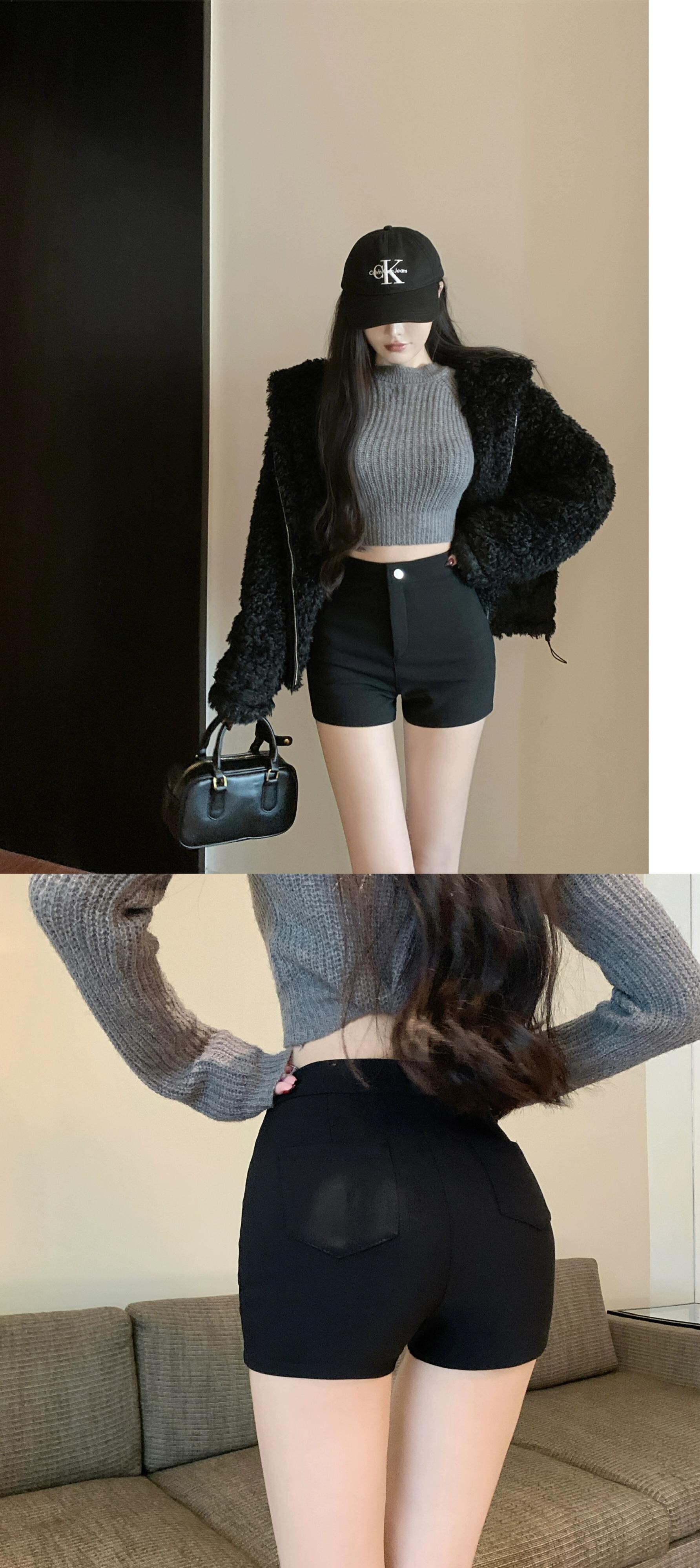 有能でシンプルな無地ハイウエスト弾性脚長カジュアルショーツスタイル痩身スリム A ラインショーツ女性 エラスティック 伸縮 ブルマー Aライン ソリッドカラー nana23150952697 | modepoisson