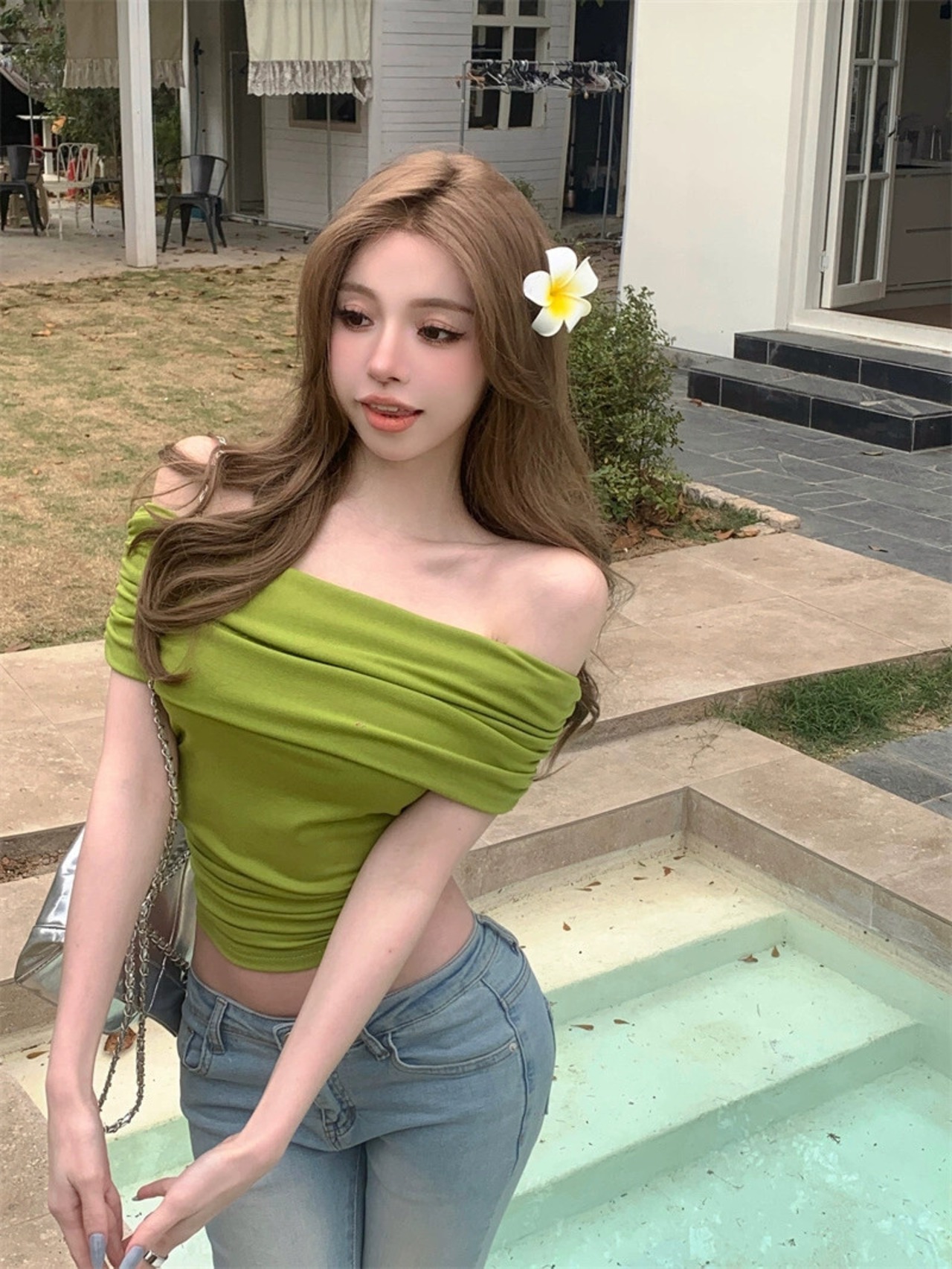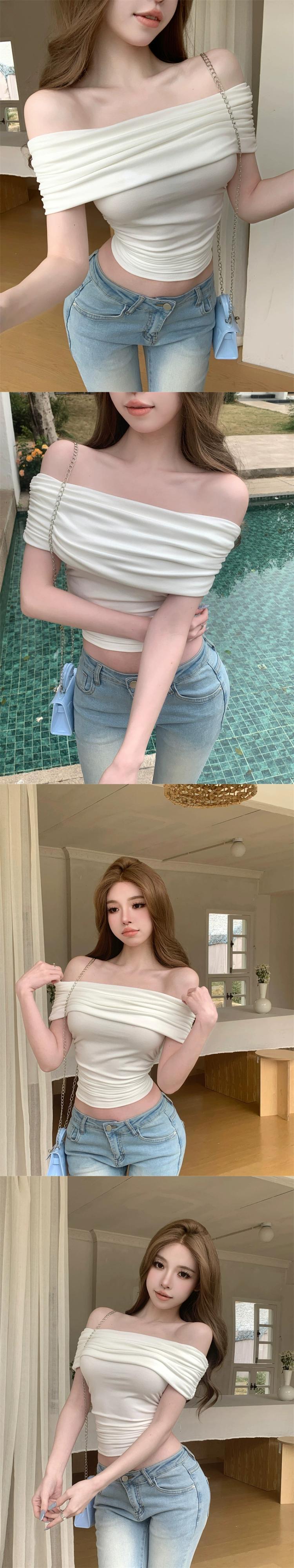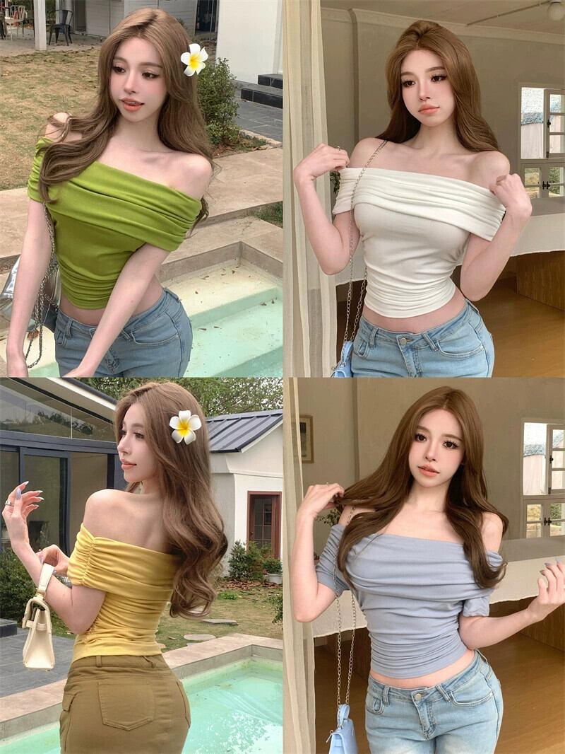 Nana~甘くてセクシーなワンショルダーTシャツレディース、夏スリムフィットショート純粋な欲望スタイルのデザインニッチオフショルダートップ 大人ガーリー スウィート キュート カジュアル サマー 夏物 ピュア nana95577535708 | modepoisson