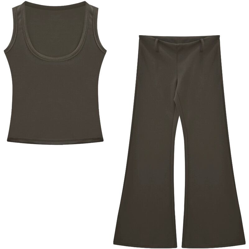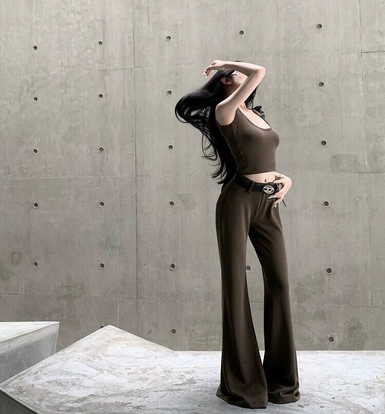 スーツ ノースリーブ U ネック スポーツ ベスト レディース フロアレングス フレア パンツ 2 点セット 2024 ファッショナブルで多用途 レッド nana19265618679 | modepoisson