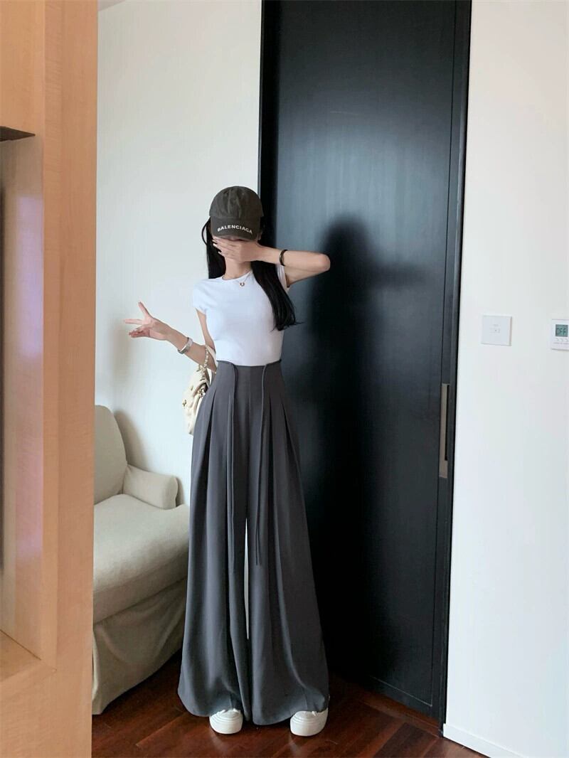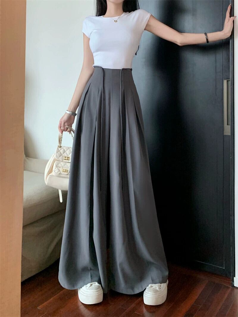 -ウエストスーツパンツ、レディースワイドレッグカジュアルパンツ、ルーズスリムパンツ、ドレープストレートスカートパンツ、新しい2024スタイル nana80170458068 | modepoisson