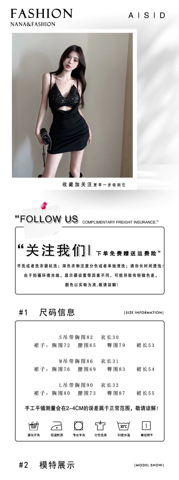 -エンドスパンコール付きスリムフィットホルターネックサスペンダードレス秋と冬、セクシーな黒のショートスカート2点セット女性 ブラック オータム 秋物 ウィンター 冬物 nana54386707346 | modepoisson