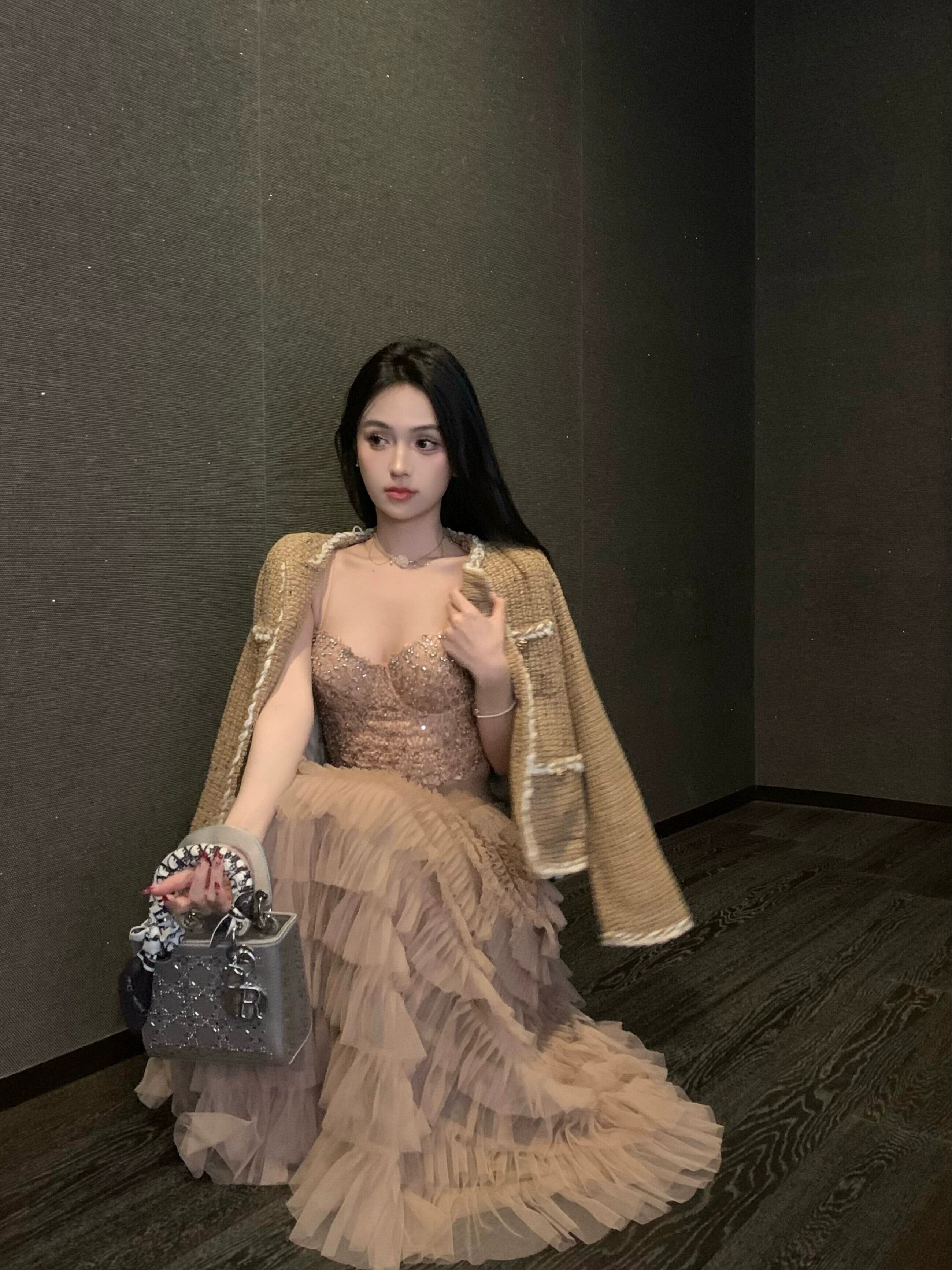色:ダイヤモンドがちりばめられたバンドゥ,スカート,小さなフレグランスコート