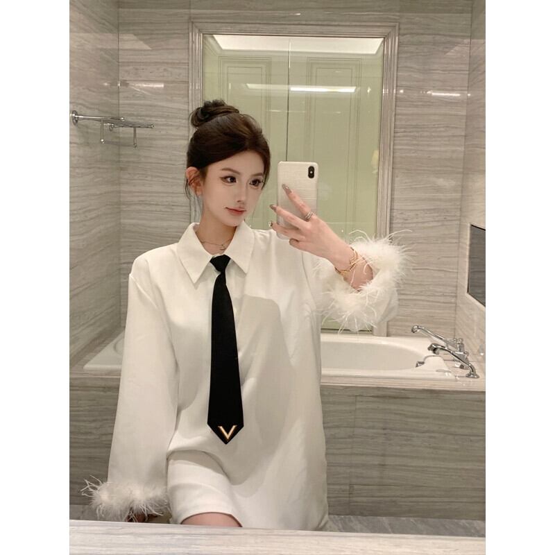 フランスのレトロな香港スタイルの長袖シャツの女性の秋と冬の新しい気質白シャツファッショナブルなスリムシックなトップ ロング ホワイト オータム 秋物 ウィンター 冬物 nana5504943476 | modepoisson