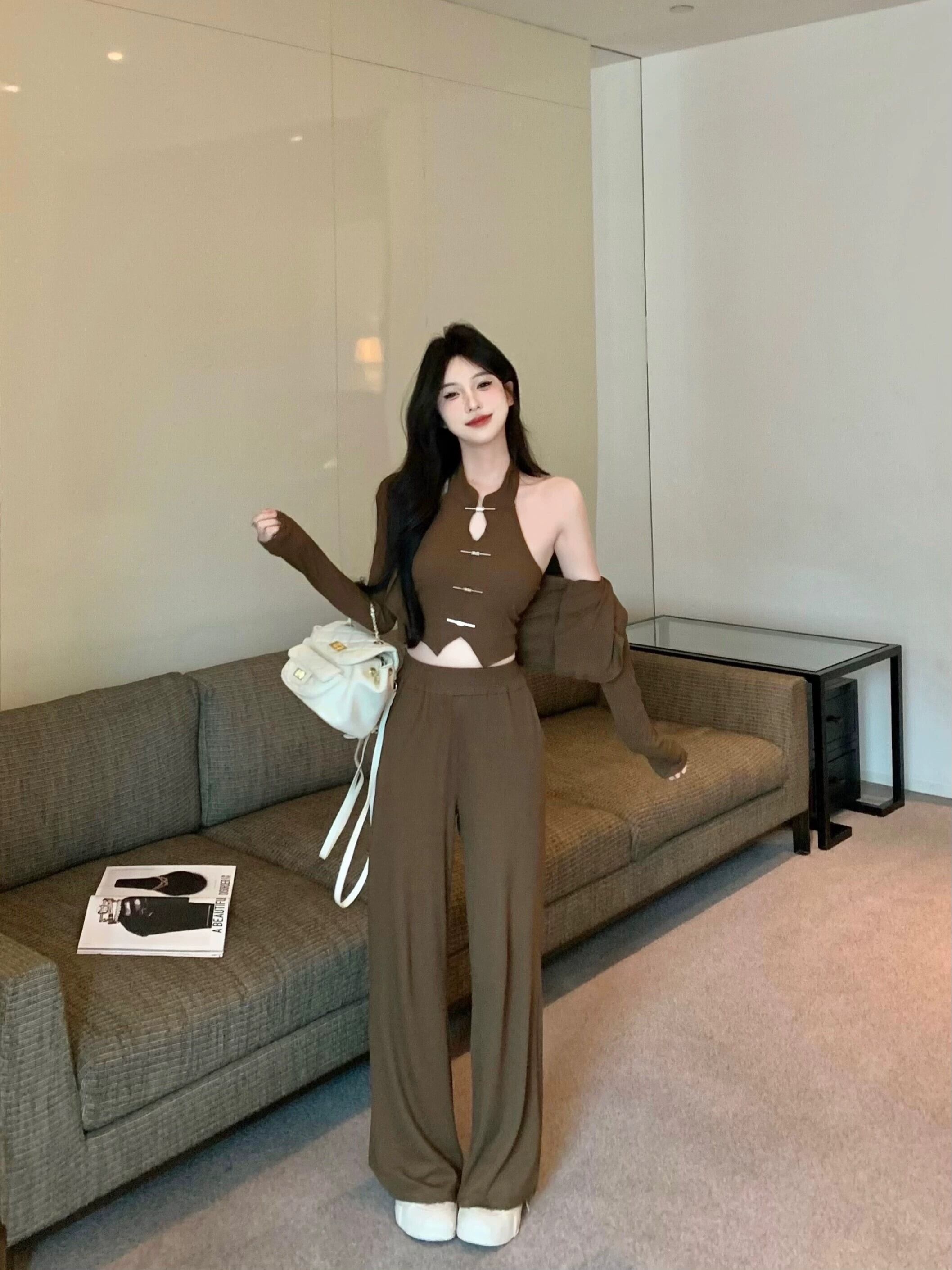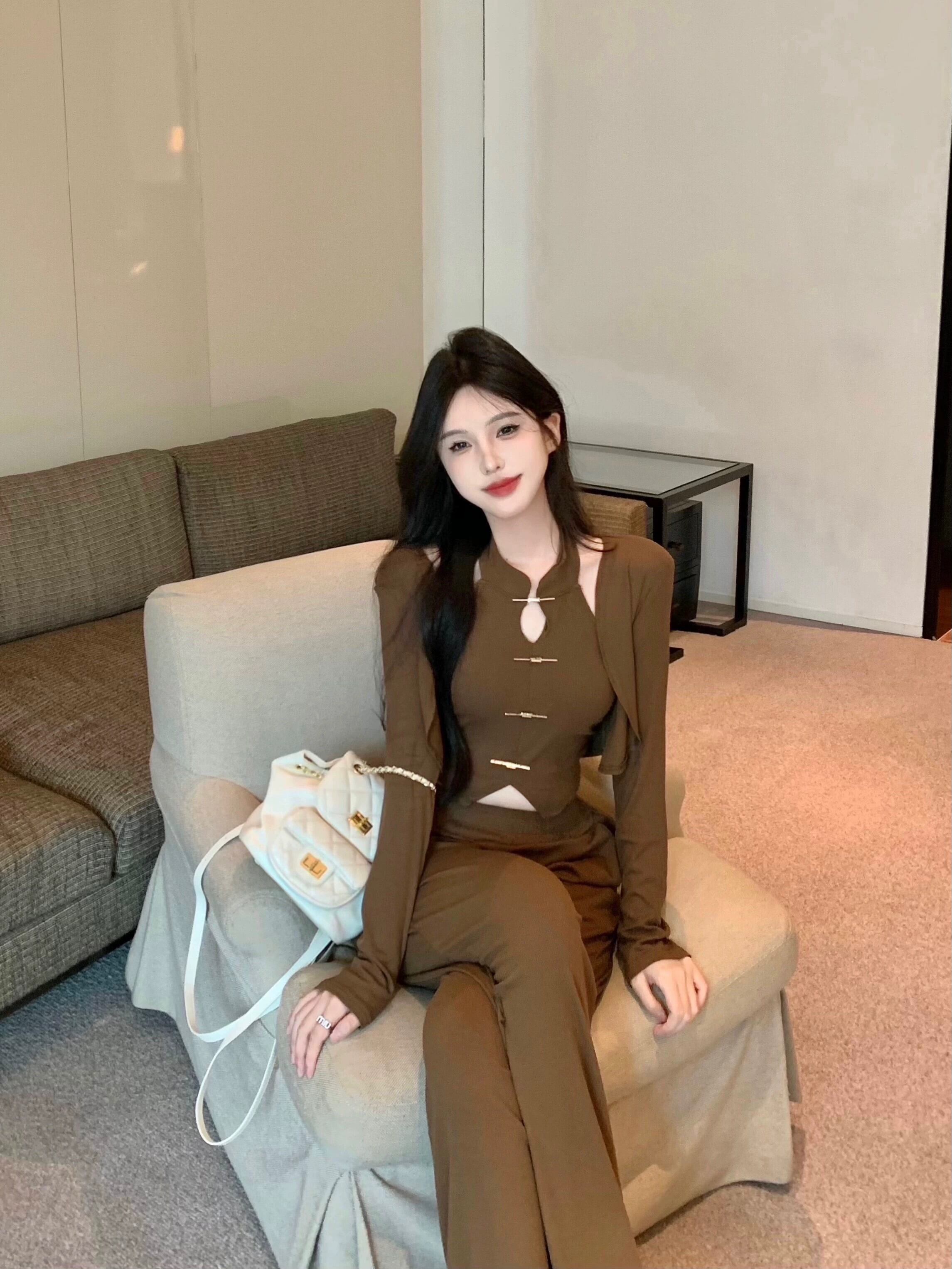 中国風のスーツの女性の 2024 春の新しいスタイルのサスペンダーカーディガントップカジュアルパンツファッション 3 点セット スプリング 春物 nana70678853042 | modepoisson