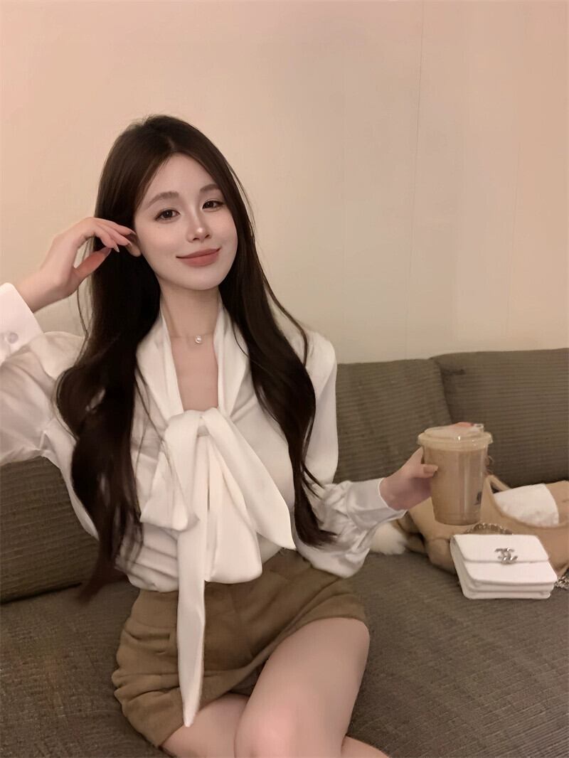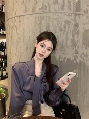 フレンチデザインニッチシャツ長袖ショルダートップ女性の秋と冬ブラックルーズスリミングボトリングシャツ ロング オータム 秋物 ウィンター 冬物 nana62677435046 | modepoisson