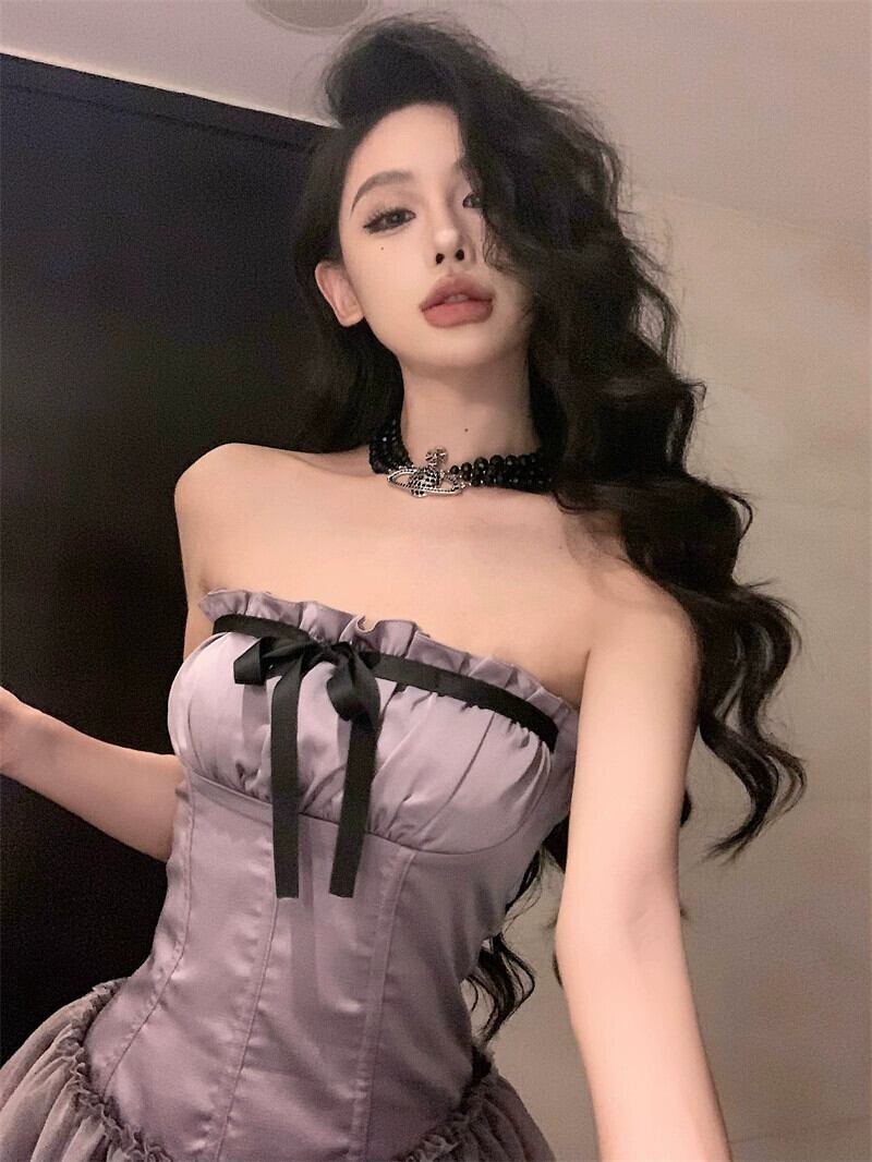 気質ドレス、ウエストAラインスカート、秋冬インナーウェア、新作チューブトップドレス、ふくらみのあるショートスカートの小柄な女性 オータム 秋物 ウィンター 冬物 nana6944725082 | modepoisson