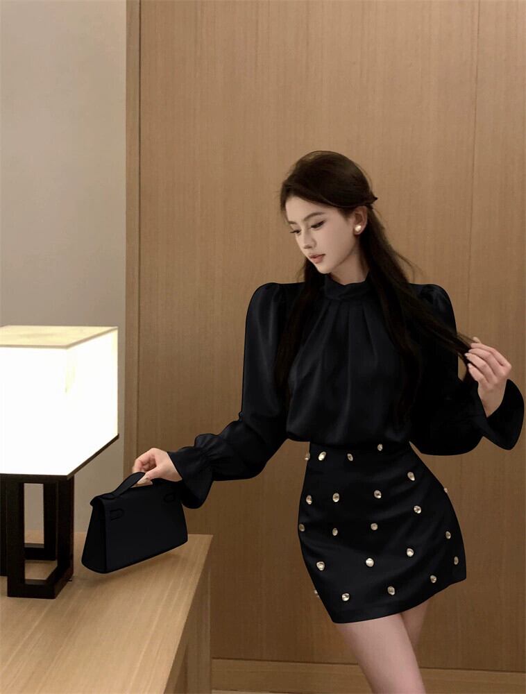 色:アプリコットトップ,ブラックトップ,アプリコットスカート,黒スカート