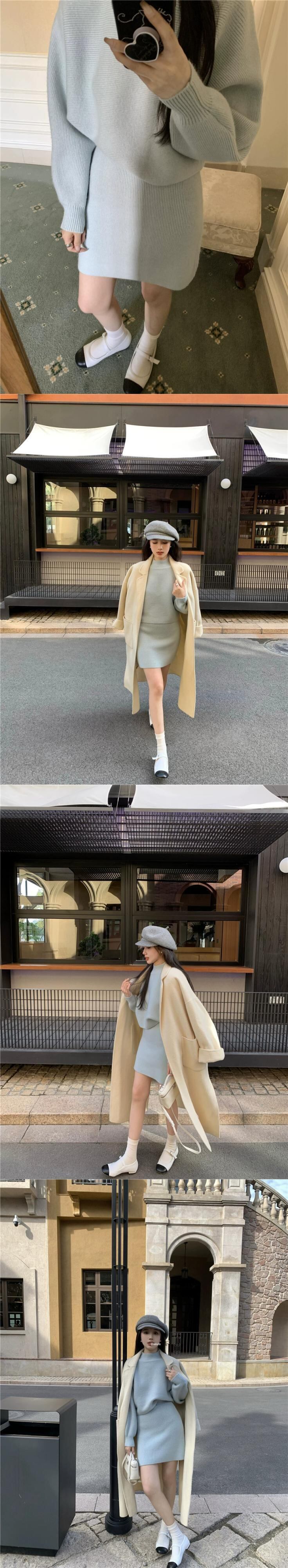 多用途ゆるい怠惰なセーター秋と冬のスーツの女性のトップハイウエスト痩身スカート気質 2 点セット ハイウェスト オータム 秋物 ウィンター 冬物 nana6317763822 | modepoisson