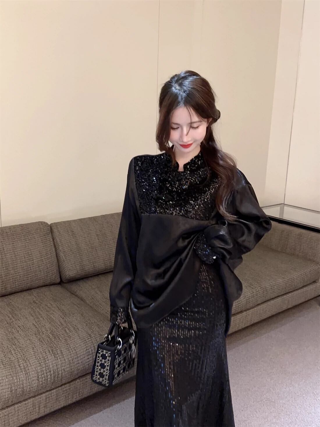 色:ブラックトップ,アプリコットトップ,黒スパンコールスカート,ホワイトスパンコールスカート