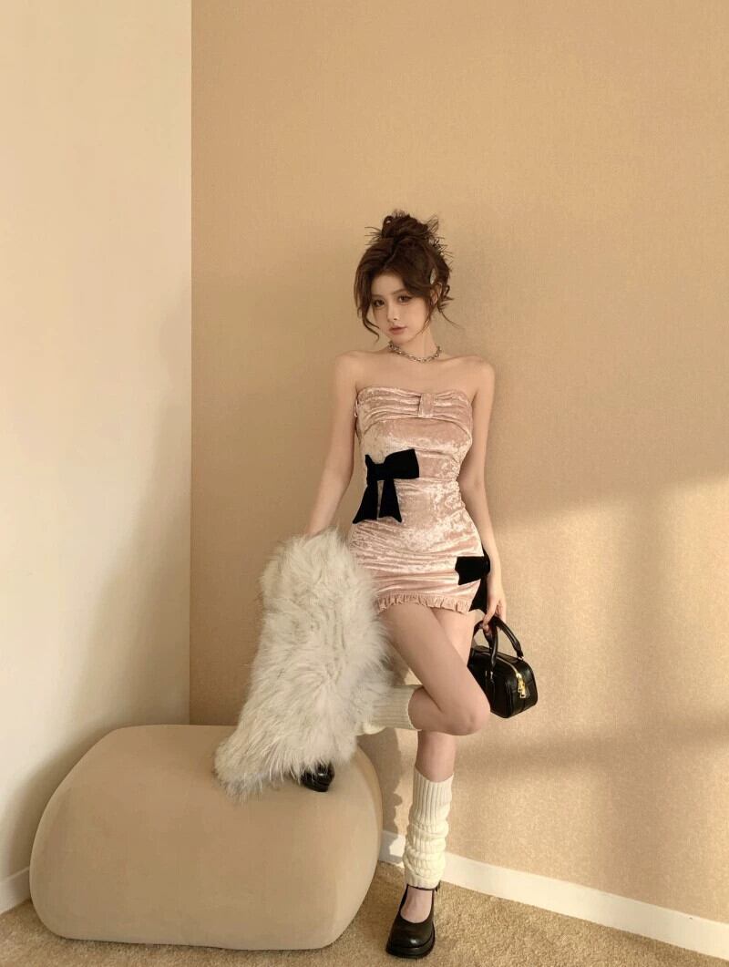 気質ドレス純粋な欲望チューブトップセクシーなベルベットスリムドレスショートスカート女性の秋と冬の新しいスタイル オータム 秋物 ウィンター 冬物 ピュア nana41032287154 | modepoisson