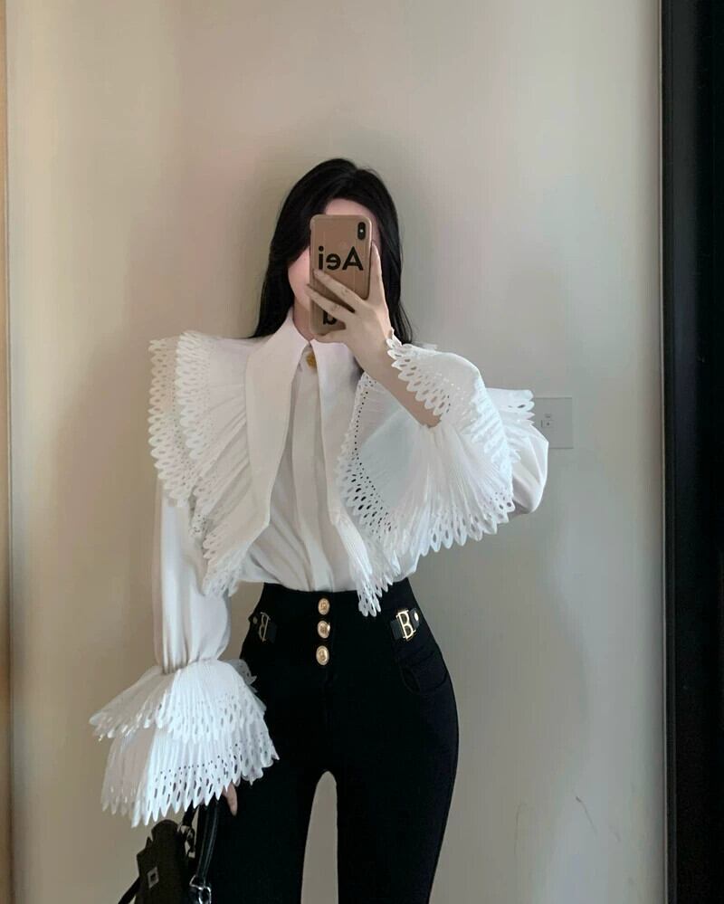 ニッチなハイエンドデザインのフレンチシャツスリムフィット白シャツレディース春の新しいスタイルのユニークなトップ ホワイト スプリング 春物 nana79419731348