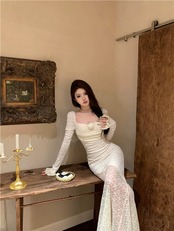 セクシーなレースの長袖ドレスの女性の秋と冬の新しいスタイルのインナーウェア気質底ロングスカートウエストカバーヒップスカート オータム 秋物 ウィンター 冬物 nana48328652178 | modepoisson