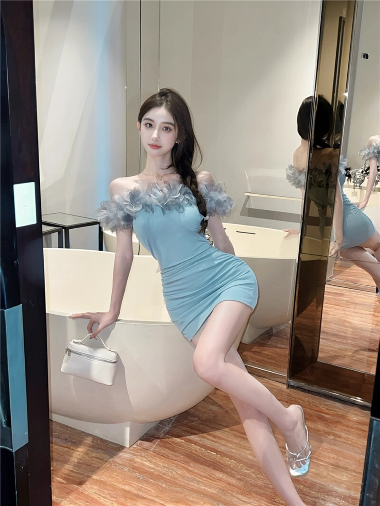 セクシーなスリムフィットヒップハグドレス秋と冬、甘いデザインとエレガントな花柄ワンショルダーショートスカートレディース 大人ガーリー スウィート キュート カジュアル オータム 秋物 ウィンター 冬物 nana49052403182 | modepoisson