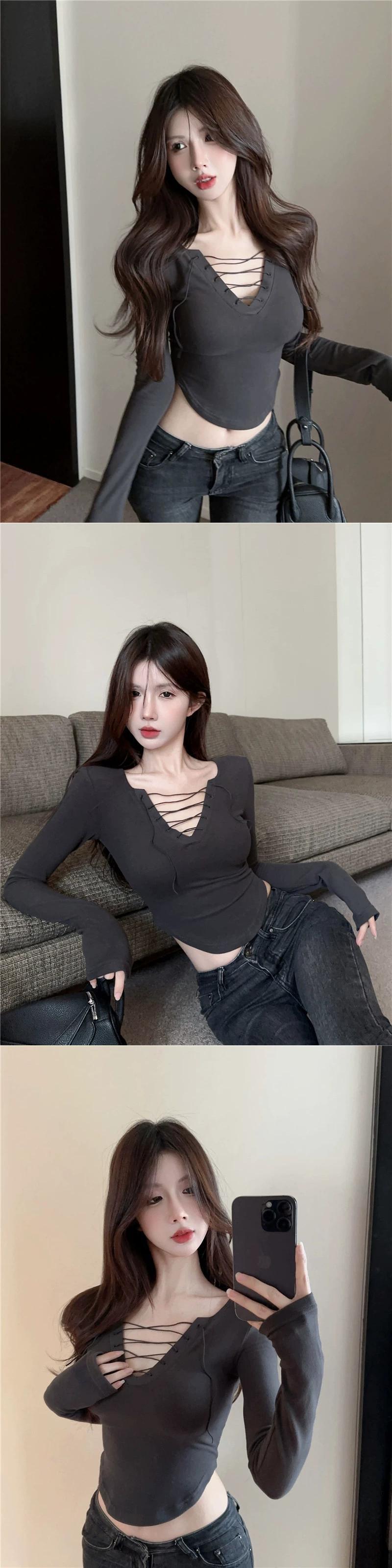 長袖 tシャツ純粋な欲望スタイルストラップスリムスリムボトリングシャツ女性初春の新しい重工業ニッチショートトップ ロング スプリング 春物 ピュア nana40740823649 | modepoisson