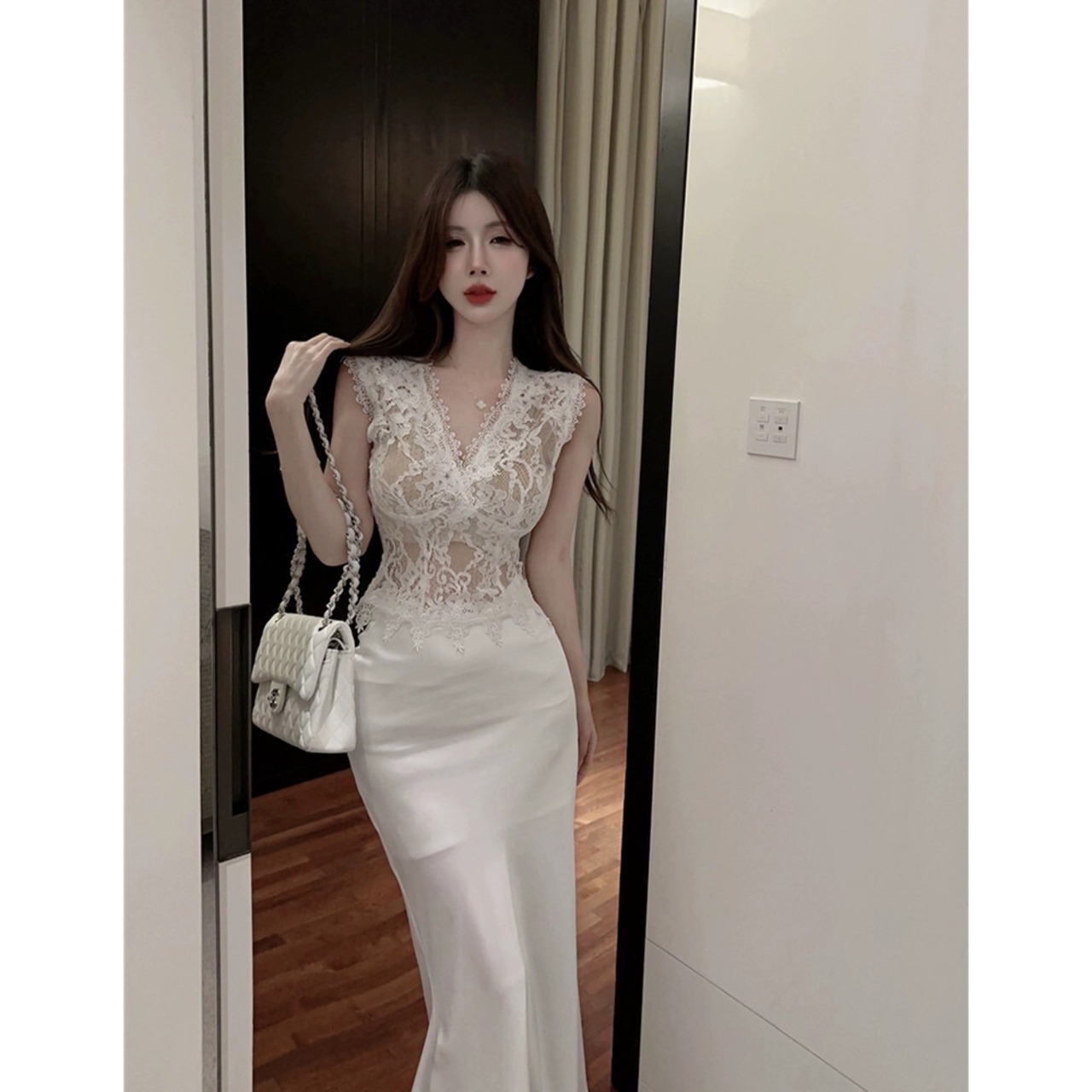 レースノースリーブトップス、高級気質スーツ、ハーフスカート、フィッシュテールロングスカート、初春の新しいスタイルの2点セット女性 スプリング 春物 nana13677533430 | modepoisson