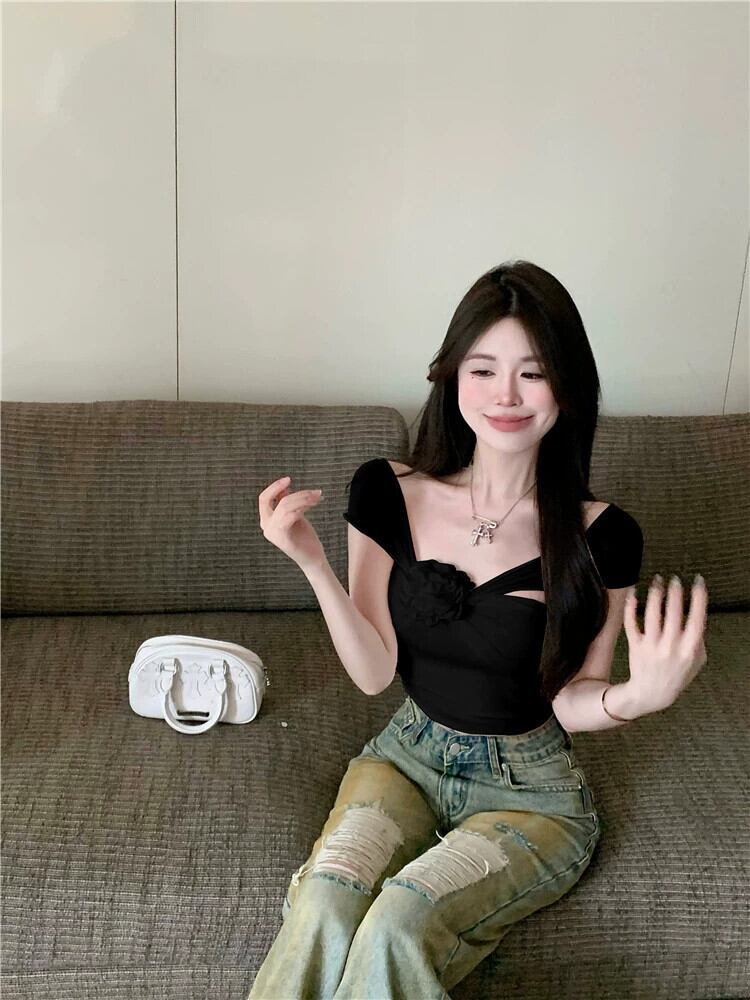 ホットワンショルダー白 tシャツ女性の夏のメッシュスプライシングスリムノースリーブボトムシャツデザインショートトップ ホワイト サマー 夏物 nana18641728502 | modepoisson