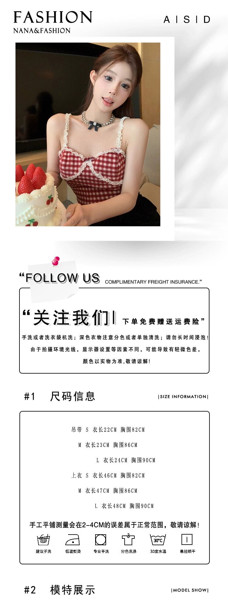 エドベルベットキャミソール女性の秋と冬甘い赤いチェック柄のセクシーなノースリーブショートトップ レッド 大人ガーリー スウィート キュート カジュアル オータム 秋物 ウィンター 冬物 nana16939113239 | modepoisson