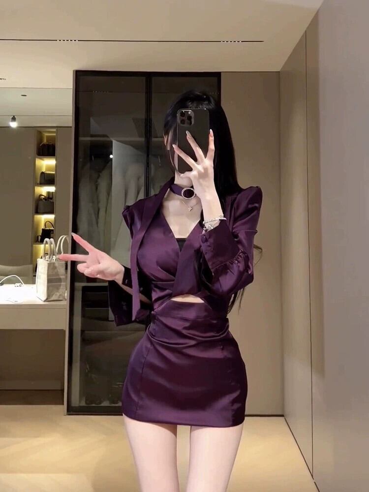 フレンチウエストドレス、高級Vネック、淑女のような気質、Aラインスカート、女性の春の新作長袖中空ショートスカート ロング スプリング 春物 nana49417134823