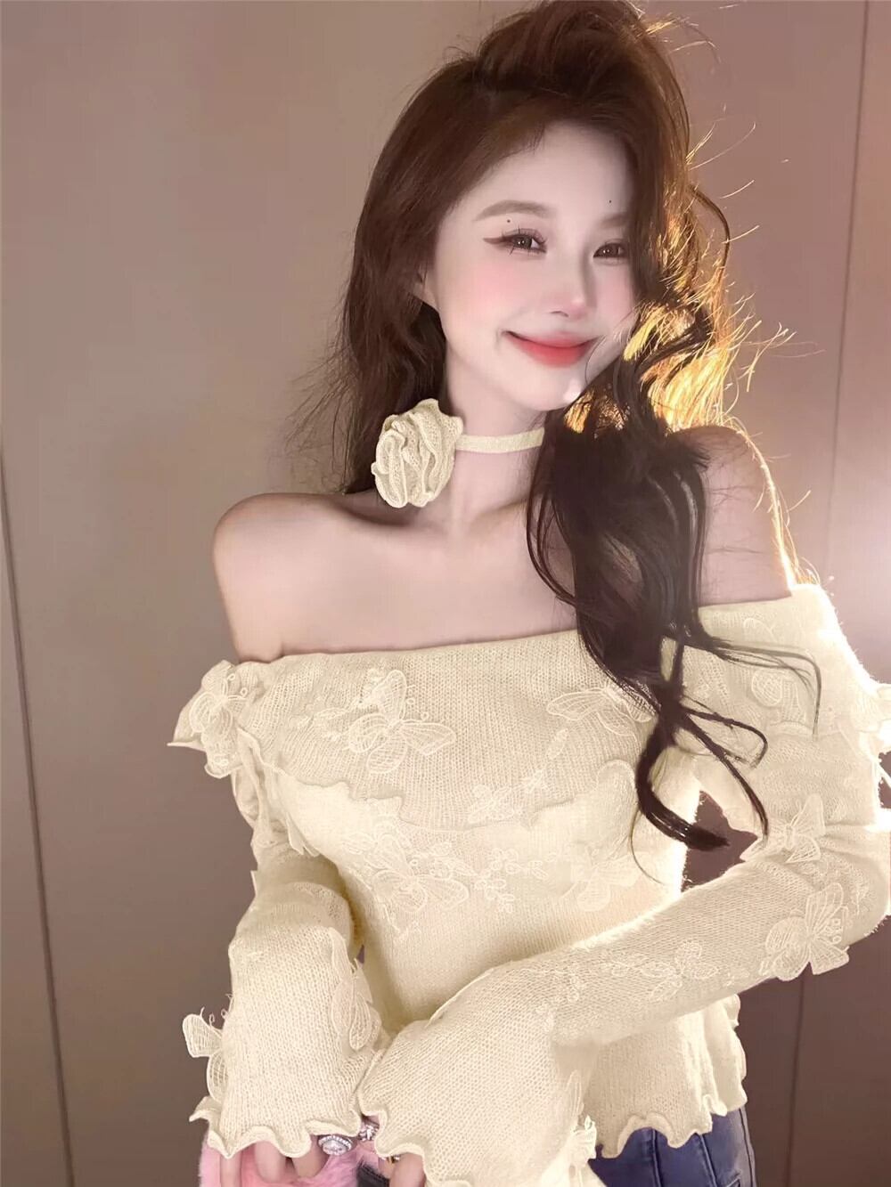 センスニッチ重工業セーター女性の秋と冬フレンチスタイルセーターショート長袖ボトシャツスリムフィットトップ ロング オータム 秋物 ウィンター 冬物 nana85626134120 | modepoisson