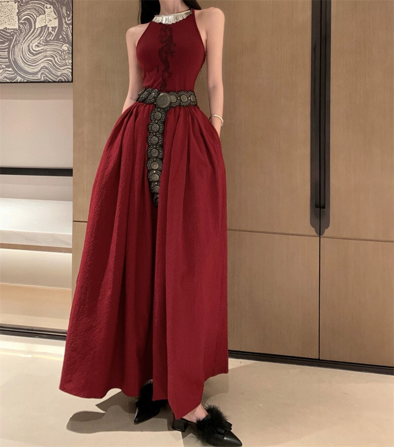 中国風プリントノースリーブドレス女性、新しいスタイル、ウエストを締める、ハイエンド、ふくらみのあるスカート、秋と冬のドレス オータム 秋物 ウィンター 冬物 nana17112053571 | modepoisson