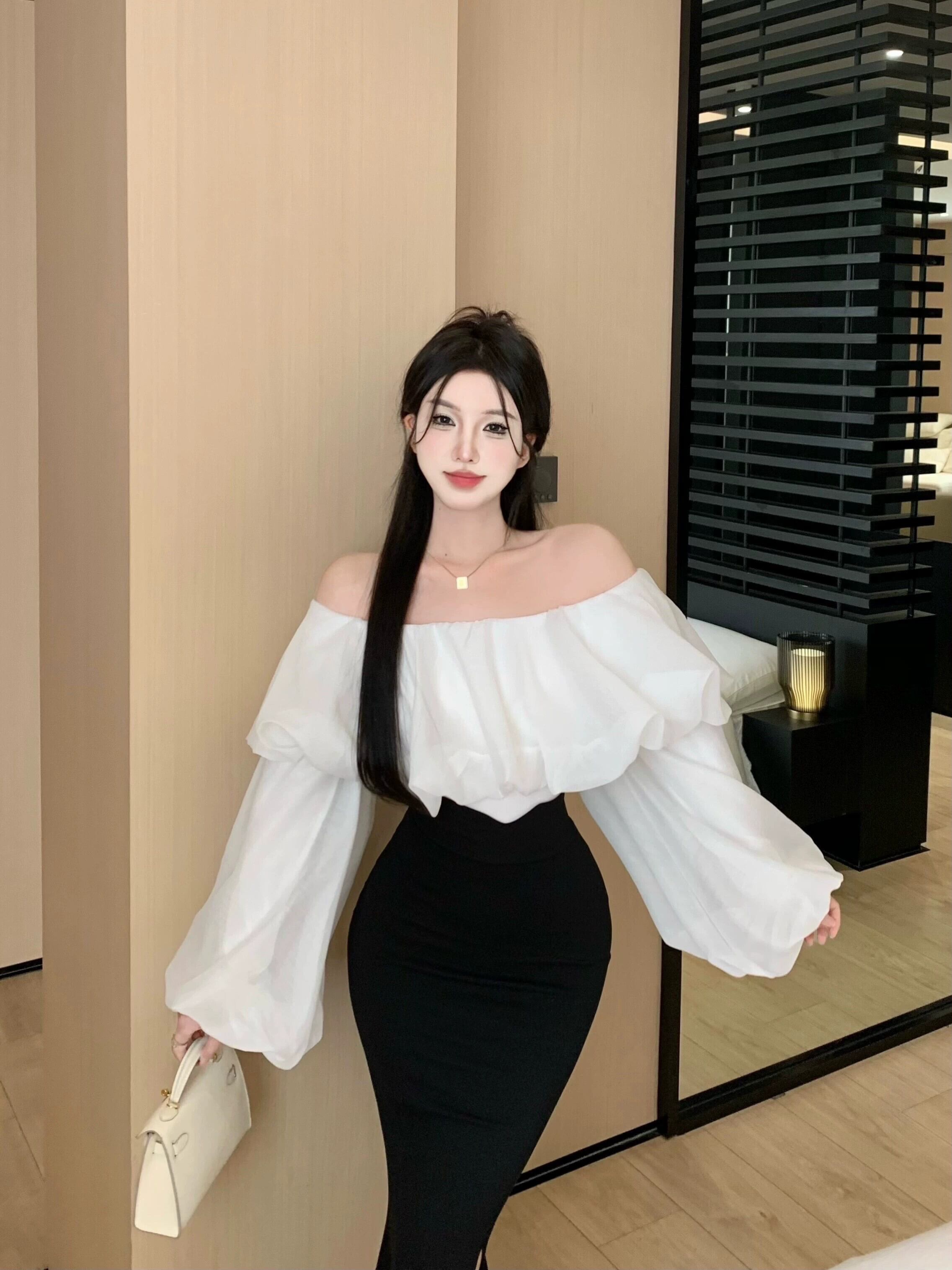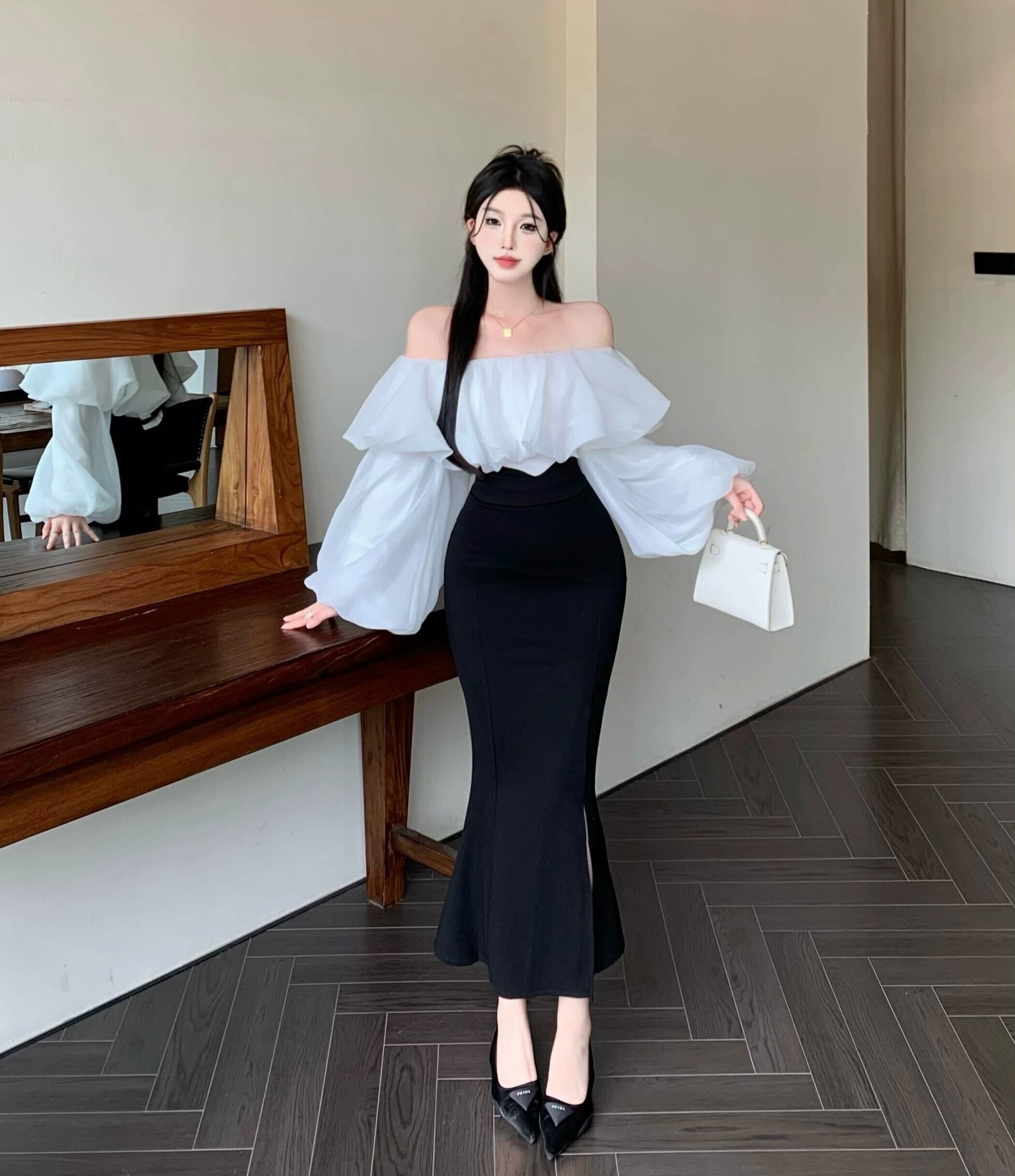 色:白のシャツ,マーメイドスカート