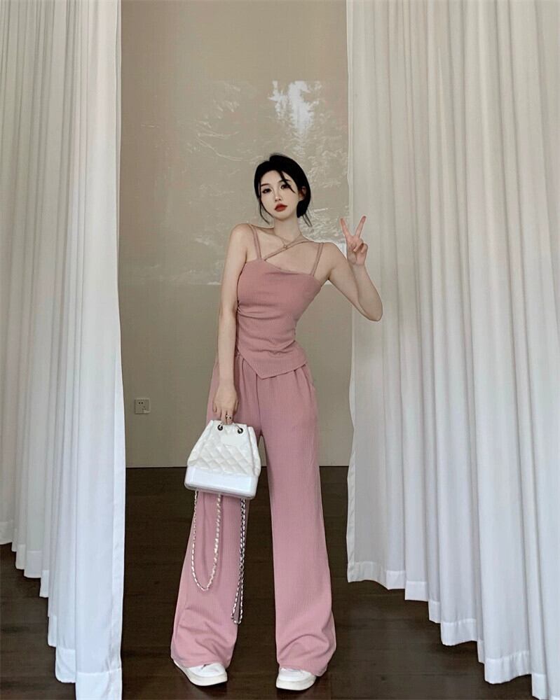 Pure Desire 秋冬 カーディガン ジャケット スーツ レディース イレギュラー サスペンダー トップ ストレートレッグ ワイドレッグ パンツ 3点セット オータム 秋物 ウィンター 冬物 ワイドパンツ nana52974680008 | modepoisson