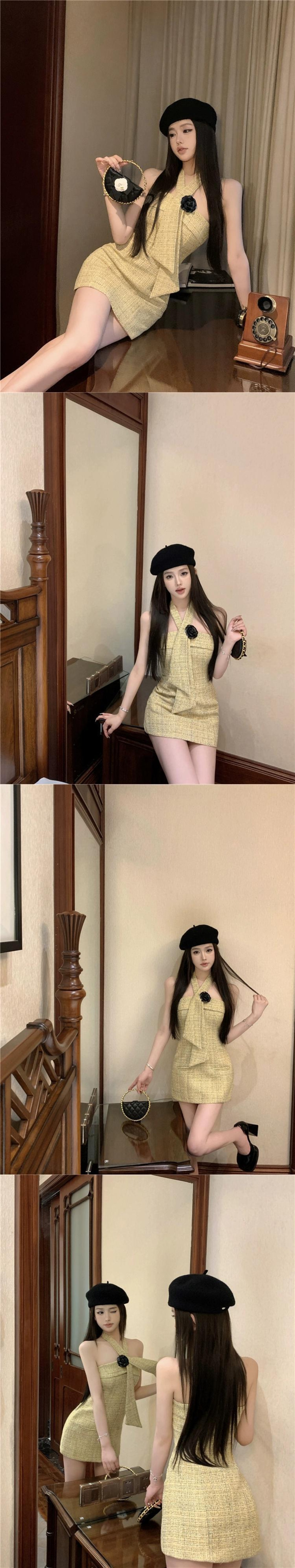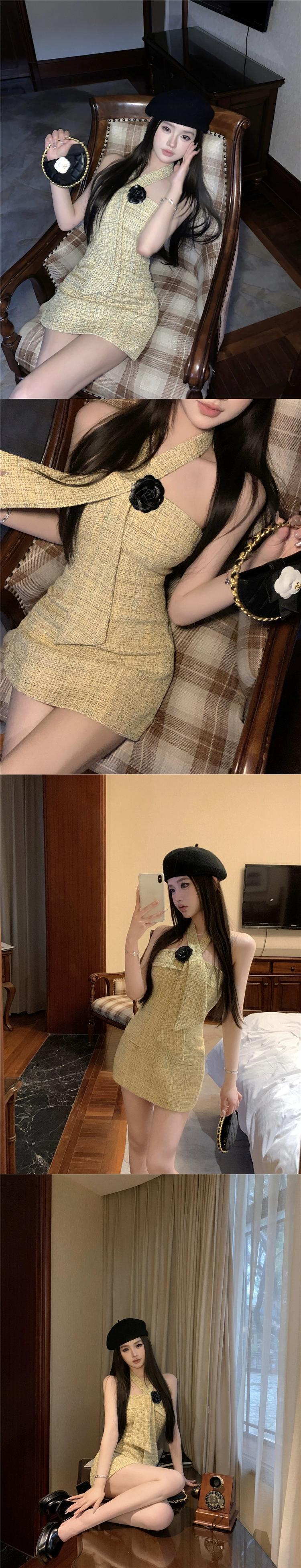 色:ホルターネックトップ+フラワー,ホルターネックドレス+お花,白いプリーツスカート