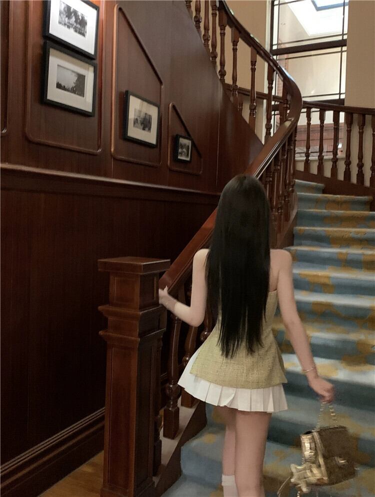ティー系コーデ一式スイート、ホルターネックトップ、スモールフレグランススーツ、プリーツスカート、春ツーピースセットレディース 大人ガーリー スウィート キュート カジュアル スプリング 春物 nana68678288501 | modepoisson