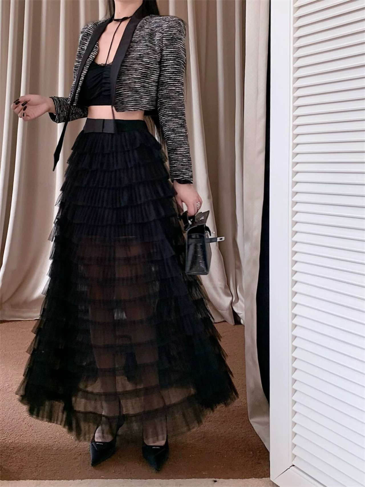 スリムブラックスカートレディース、デザイナーニッチスカート、秋冬気質ケーキスカート、新しいハイウエストAラインロングスカート オータム 秋物 ウィンター 冬物 nana33415864678 | modepoisson