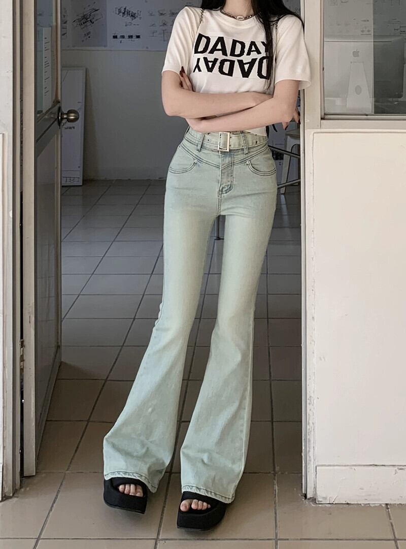 ナナ~ベルトローエッジブーツカットジーンズ春ハイウエストストレッチホースシューパンツストレートパンツ ハイウェスト スプリング 春物 ハーネス nana98083512908 | modepoisson