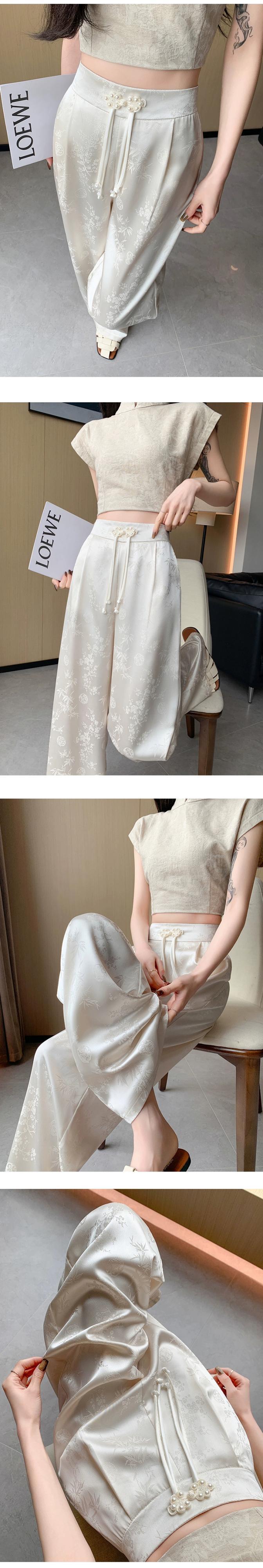 中国風の国民風のハイウエストカジュアルパンツ女性の夏ルーズでドレープのあるストレートワイドレッグロングパンツ新スタイル2024 ハイウェスト サマー 夏物 ワイドパンツ nana13180117442 | modepoisson