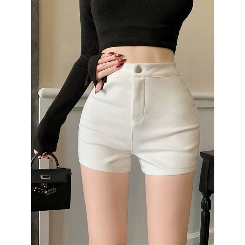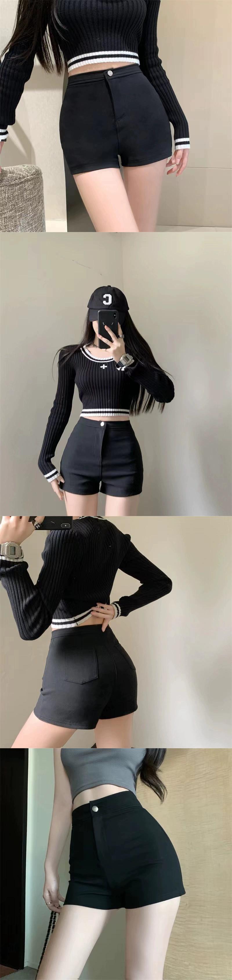 -ウエストアメリカンカジュアルショートパンツの女性、新しい夏用のタイトフィットスリムストレートパンツ、小柄な人向け、多目的な黒のパンツ ブラック サマー 夏物 ショーツ ブルマー nana19006521010 | modepoisson