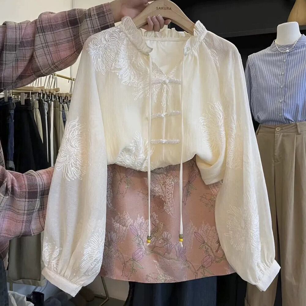 中国風刺繍日焼け防止シャツ女性の夏のスーツルーズトップ気質甘いスカート 2 点セット レッド 大人ガーリー スウィート キュート カジュアル サマー 夏物 nana41973516932 | modepoisson