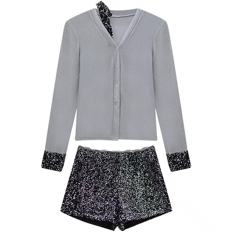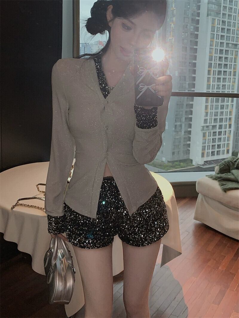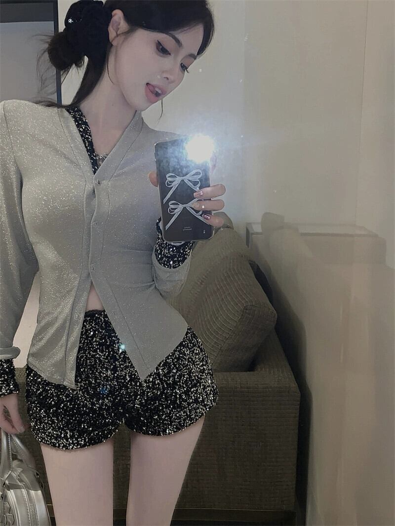 アメリカのおしとやかな気質ニットカーディガントップショーツ2024春の新ファッションスーツ痩身ツーピースセット女性 スプリング 春物 ブルマー nana25945339861 | modepoisson